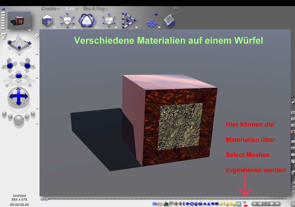 In Bryce importierst du dann das Objekt und über Select Meshes kannst du die verschiedenen Materialien markieren und ihnen dann in Bryce eigene Materialien zuweisen.