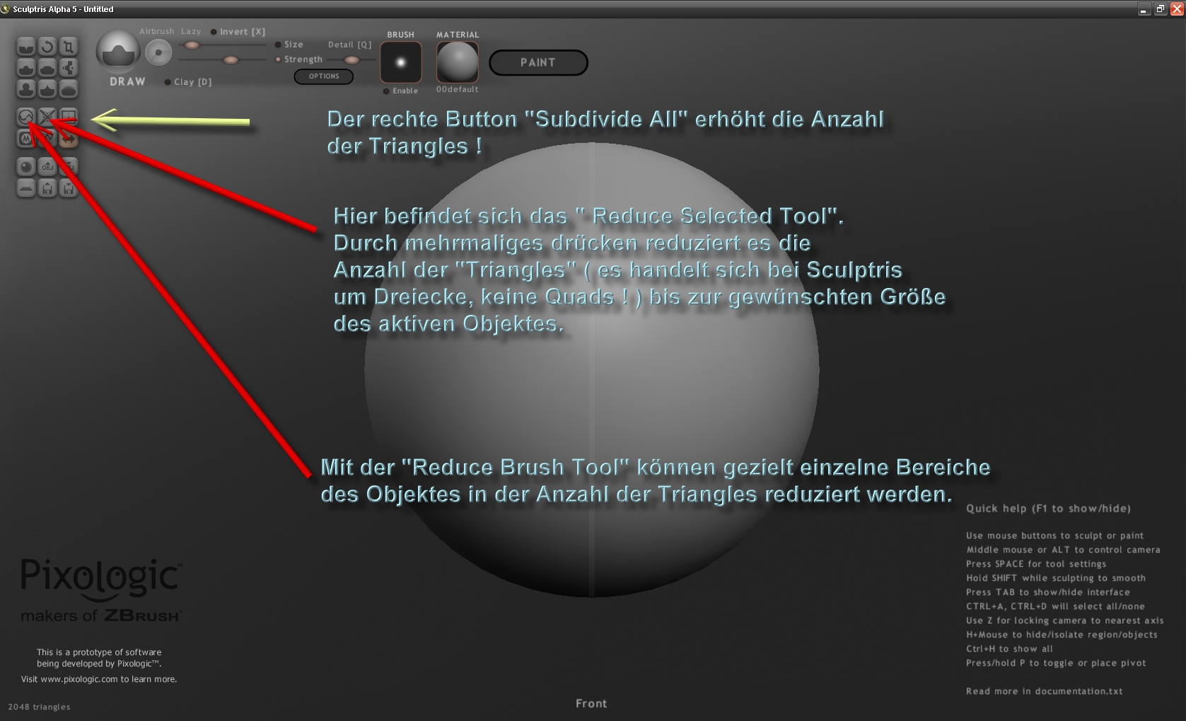 Mit dem Button Subdivide All, kannst du die Anzahl der Triangles erhöhen
