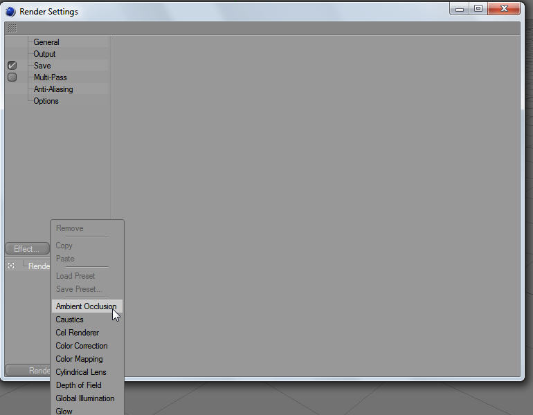 Ja, um AO verwenden zu können, mußt Du den AR haben. Zu finden ist AO in den Rendereinstellungen, unter "Effekte".