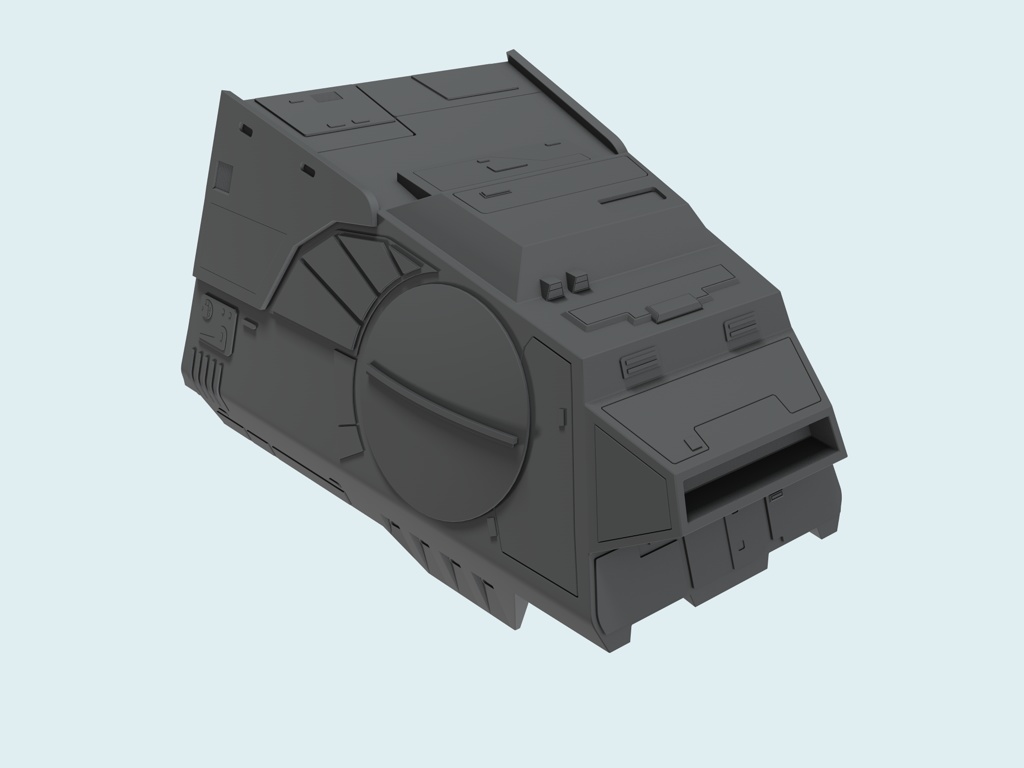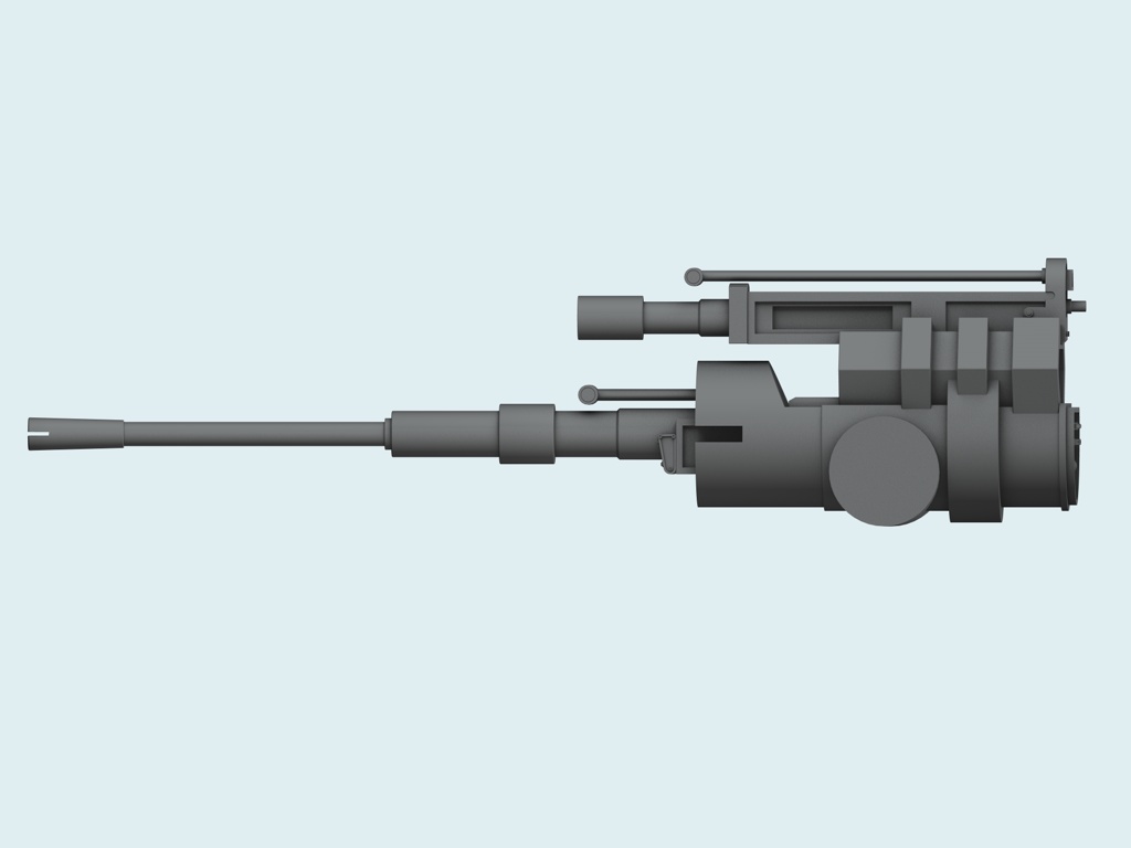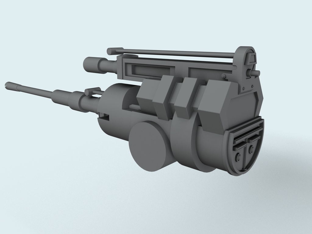 Was nicht so ganz geplant war: durch die Größe der Waffen ist es auch notwendig, irgendeine nicht allzu aufwendige Lösung zu finden, damit sie besser in die Unterseite des Kopfes integriert sind. Momentan stecken sie einfach im Kopf, und das sieht nicht sooo toll aus.