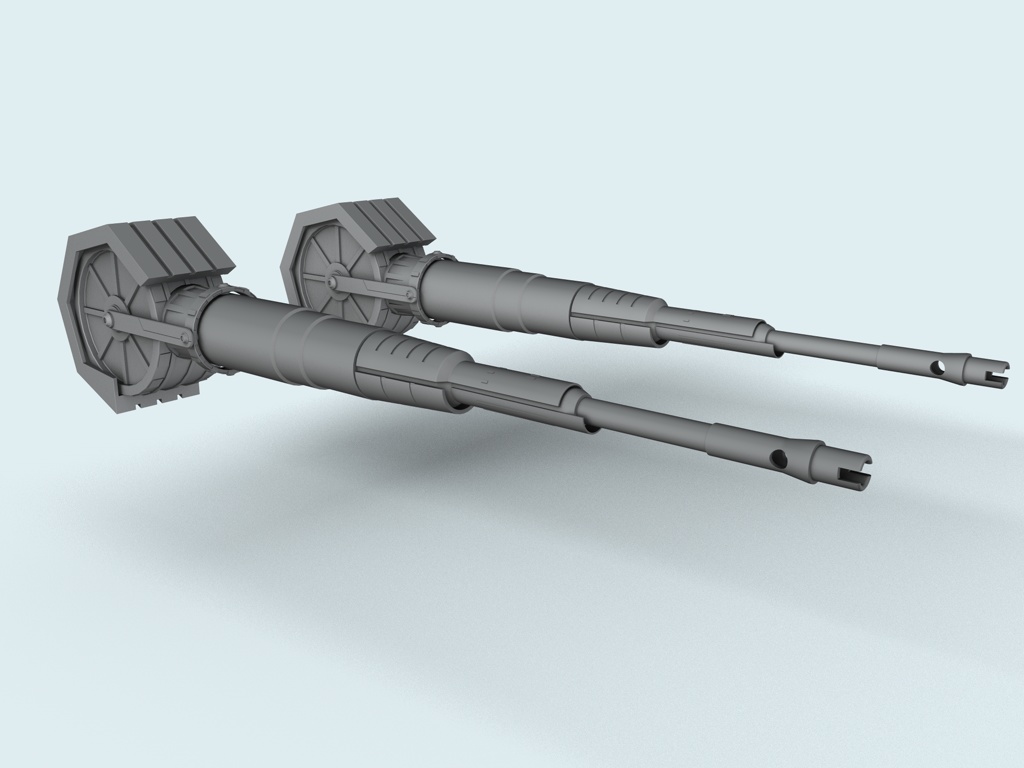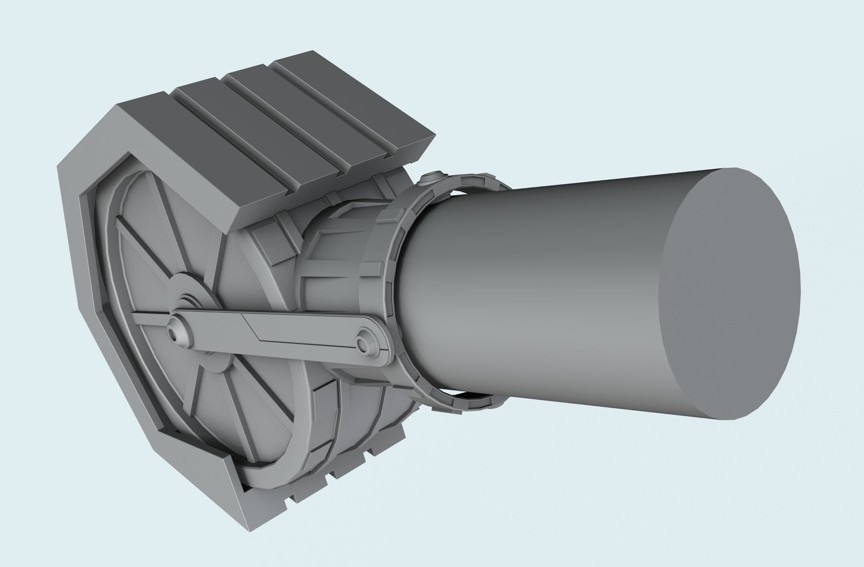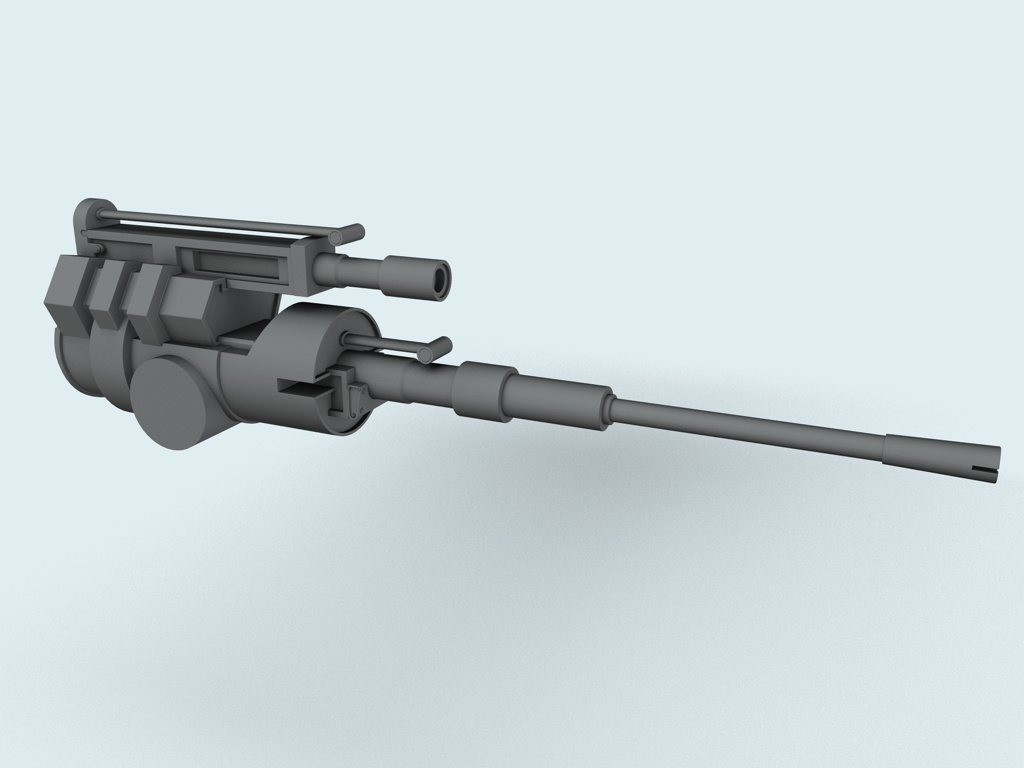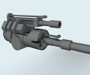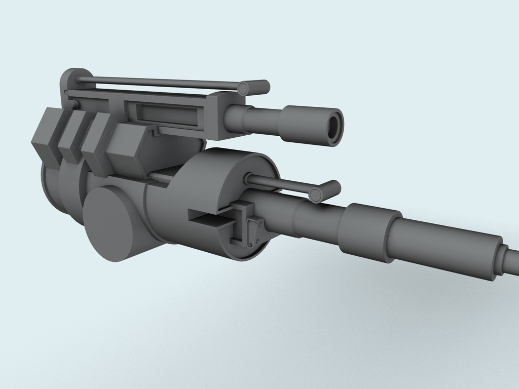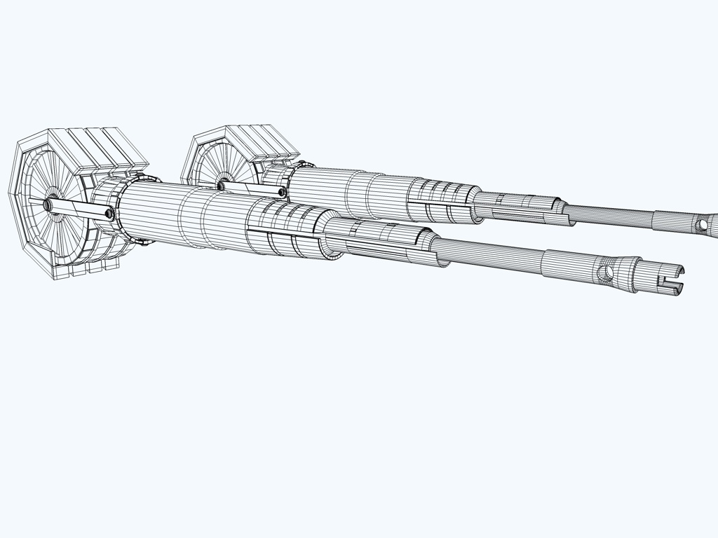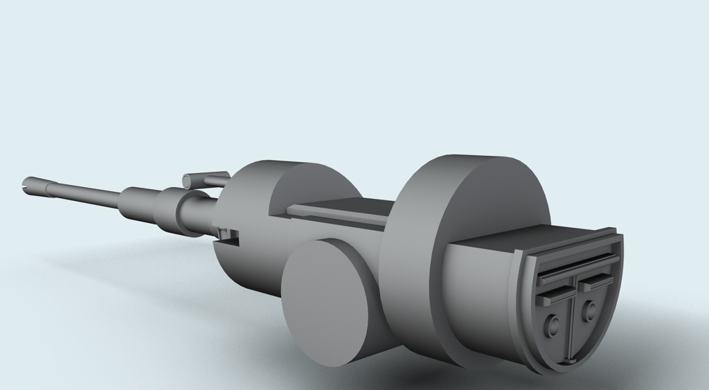 Was ich gar nicht so einfach fand, war "gute" Geometrie für die Löcher am vorderen Ende der Läufe zu bekommen. Basis war hier letztlich ein Boole-Objekt. Mit den richtigen Einstellungen für den Cylinder, der das Loch herausschneidet, konnte ich das Chaos in Grenzen halten und das Mesh dann so bearbeiten, wie ich es haben wollte. Wahrscheinlich unnütze Zusatzarbeit, allerdings mit Lerneffekt...
