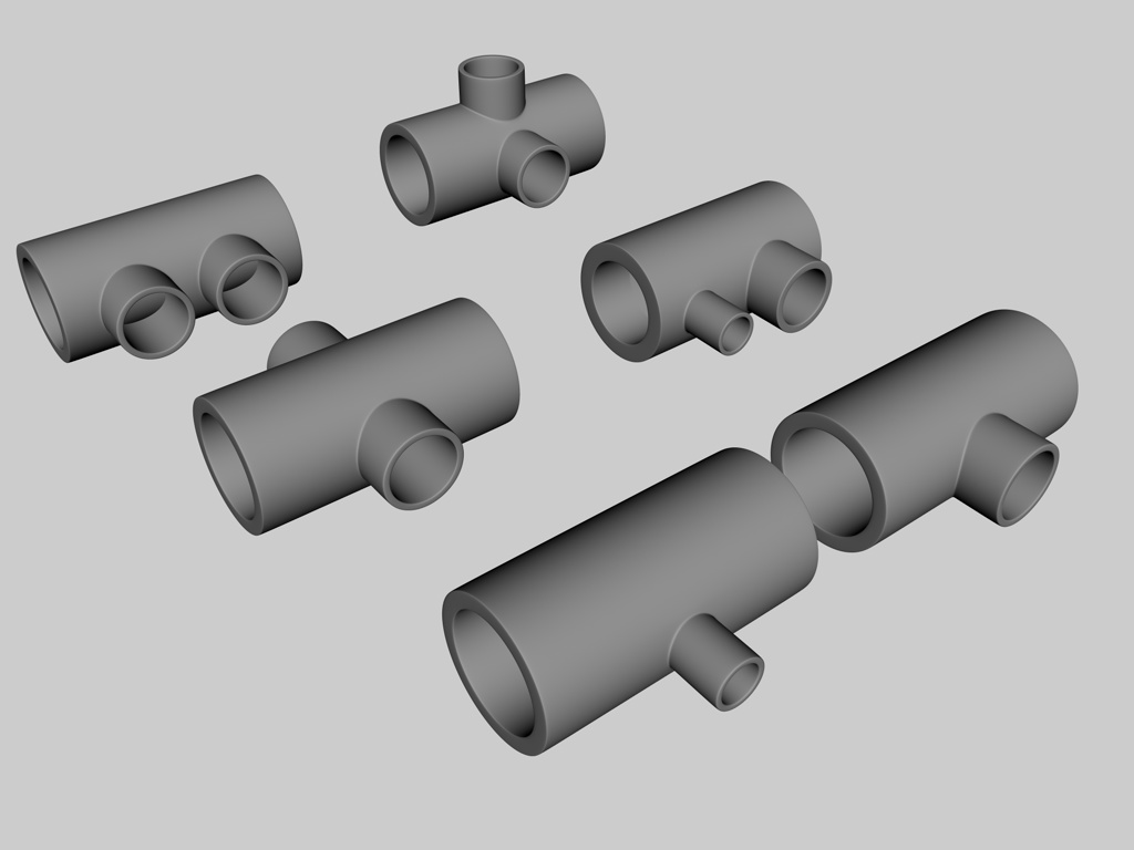 - Modellierung einiger beispielhafter Variationen auf Basis der zwei erstellten Rohrverbindungen, um eine kleine Objektbibliothek zu erstellen