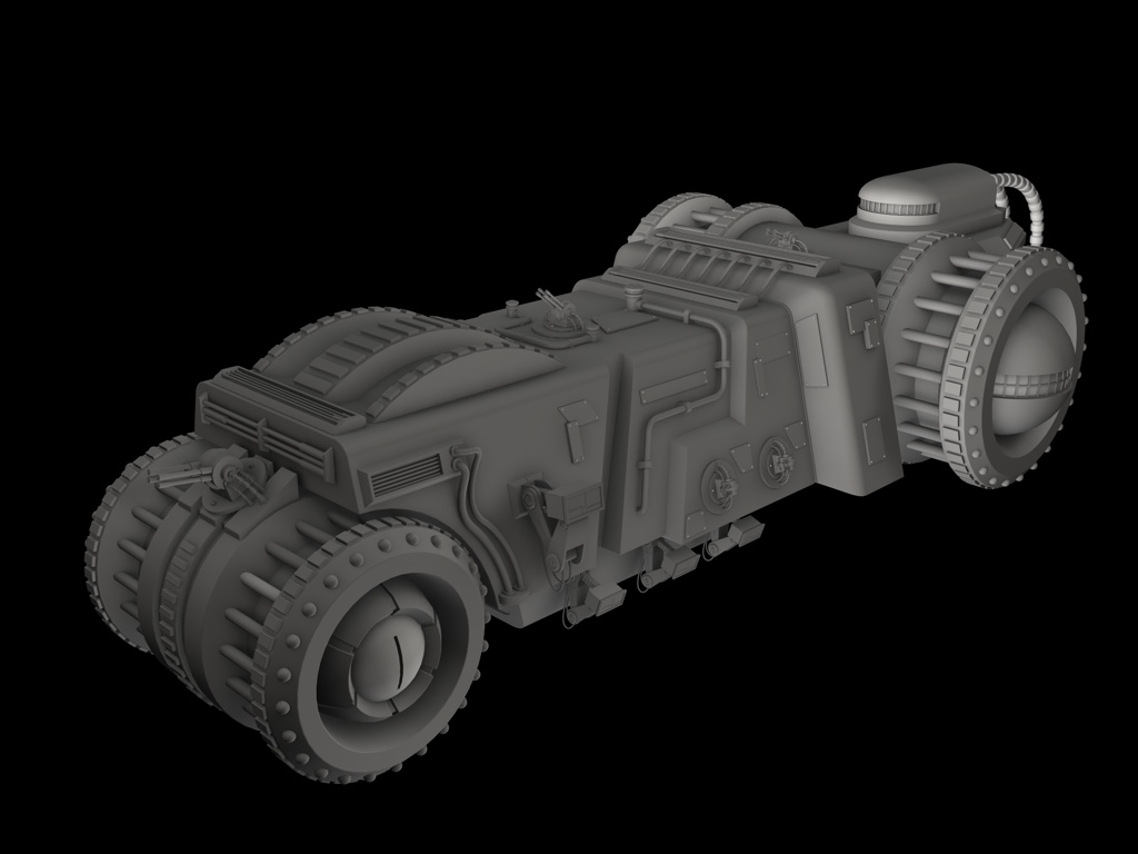 Yep, ich sehe da auch Räder. Meine erste Assoziation war allerdings "Oldtimer" und nicht Traktor. Die ganze Form erinnert irgendwie stark an ein Fahrzeug, das ist schon richtig. Das wird sich im Lauf des Projekts allerdings noch etwas relativieren. Auch wenn es anders ist als andere Raumschiffe, wird es am Ende mehr nach SciFi aussehen. Hoffe ich jedenfalls. ![]()