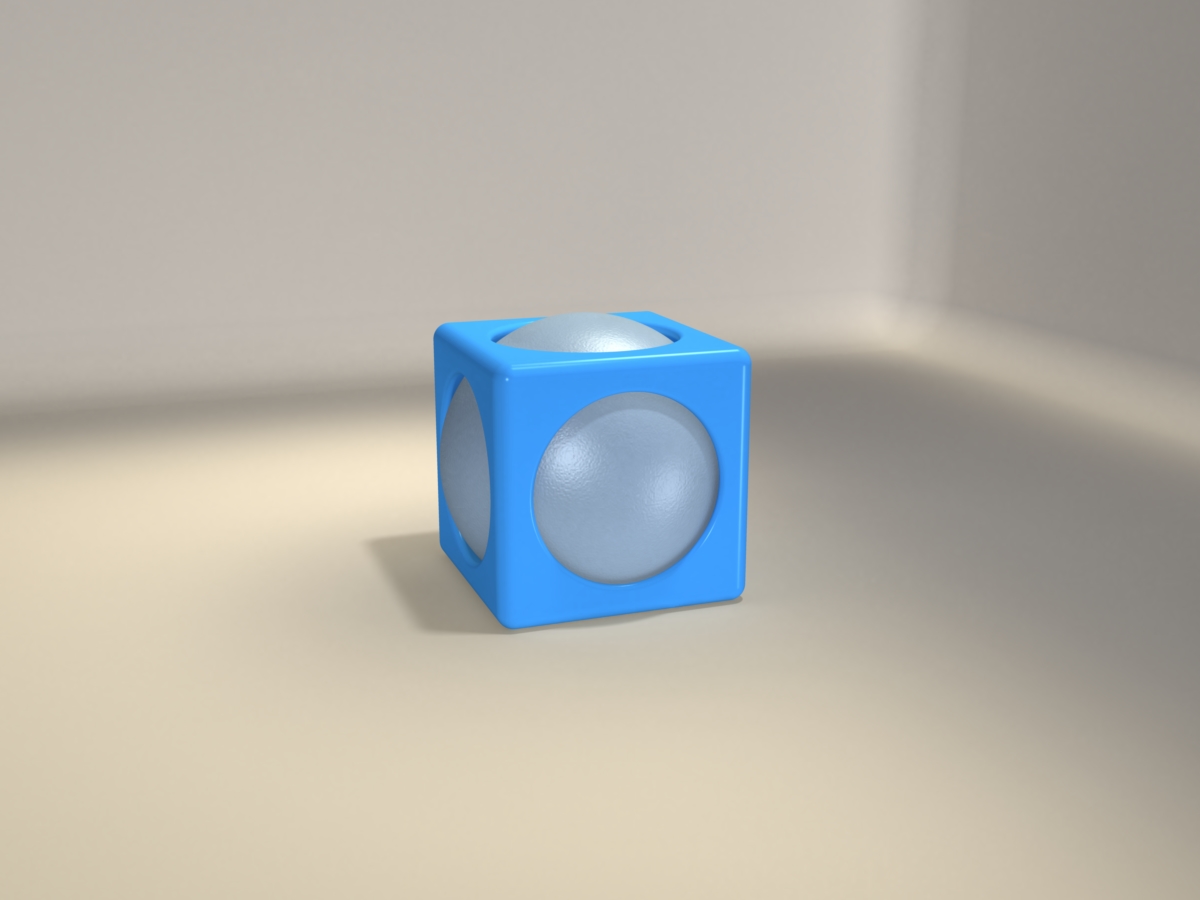 ich habe mal etwas mit meinem CAD herumgespielt. Dabei ist ein Würfel mit Ausfräsungen und ein Würfel mit Kugel drinnen herausgekommen.
