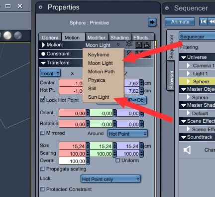 Es ist nicht genau erklärt, aber die Bewegungsmodi Sun Light und Moon Light sind für die zur Animation der Szenenhintergründe Sky und Realistic Sky.