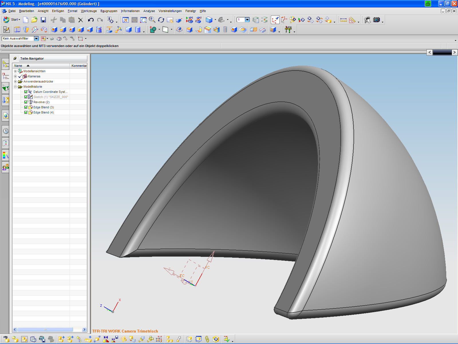 1: Den Querschnitt zeichnen und durch drehen/rotieren (ca. 30°) einen Rotationskörper erstellen.