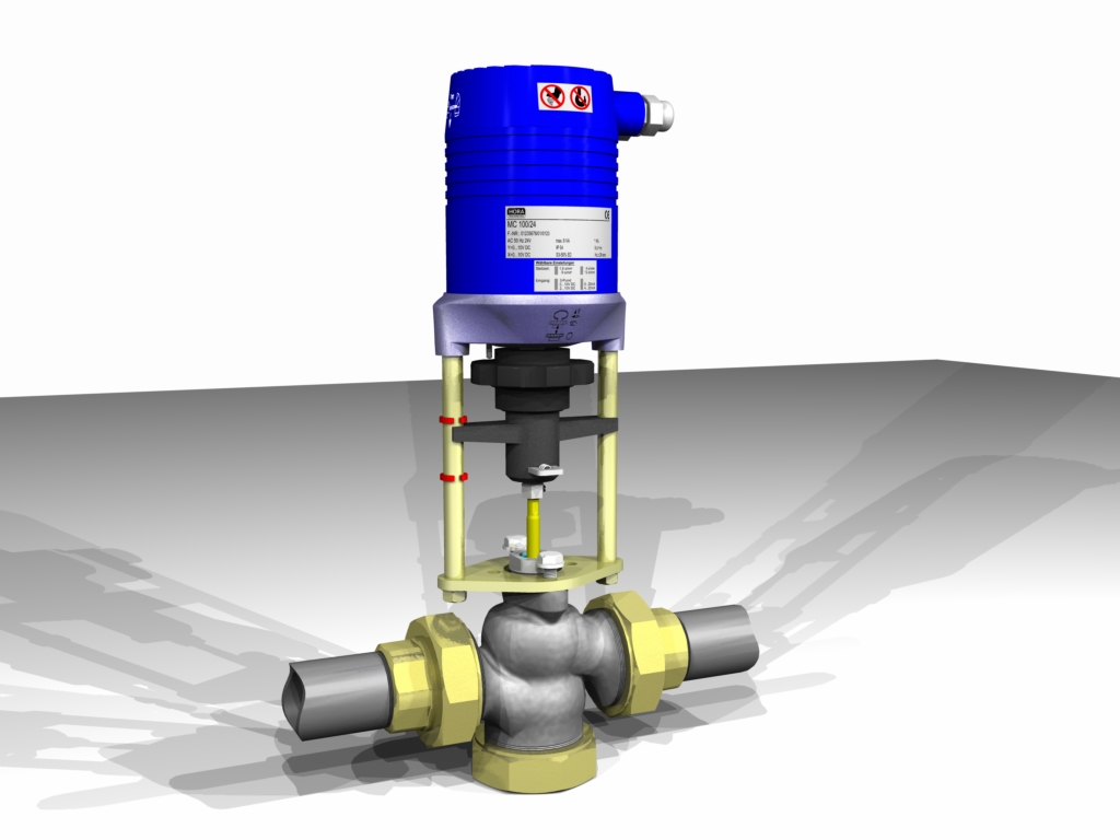 hier mein erstes Bildchen. Es zeigt ein Heizungsventil (unten) und einen dazugehörigen Antrieb (oben). Zum Einsatz kommt diese Gerätekombination in großen Gebäuden.