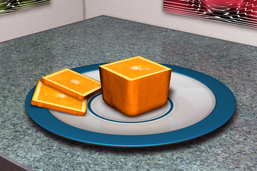 glaube das liegt an dem schwarzen rand der frucht schale, finde auch das sie drauf gesetzt aus schaut .. ist eine 2ter relief shader der additiv hinzugemischt wird, der es verursacht ...