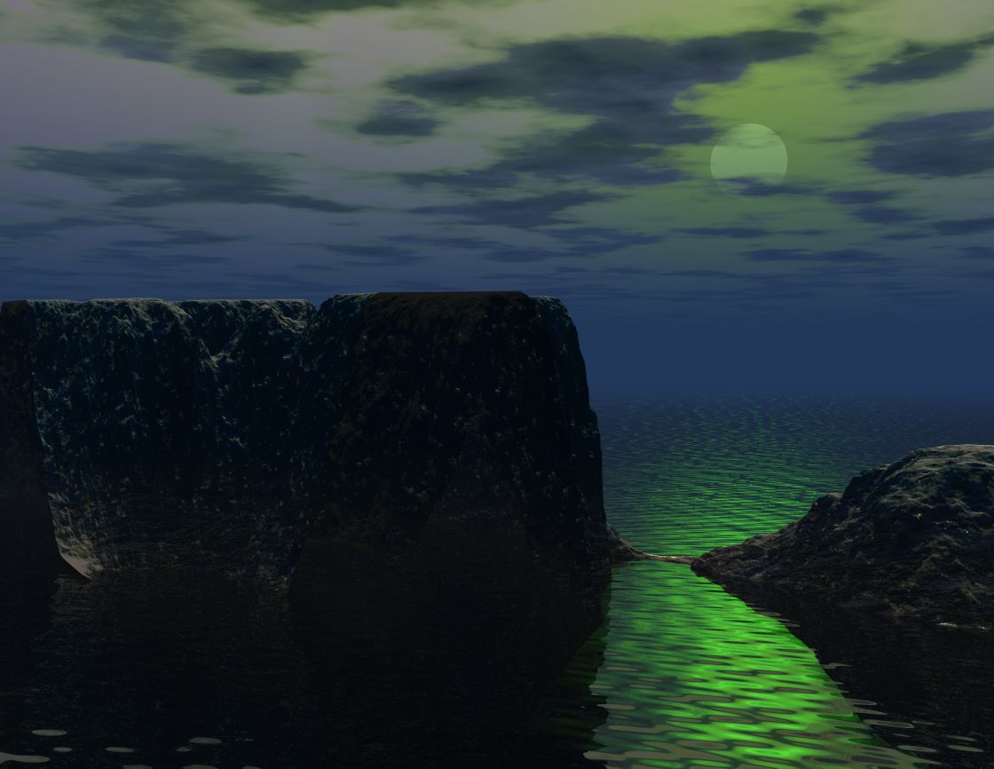 Hab mal etwas an der Sonnen/bzw. Mondeinstellung herumgeschraubt. damit es etwas anders wirkt. Mit Texturen kenn ich mich noch nicht so aus , bin ja noch am Anfang , hab da zwar mal geschaut und auch dran rumgedreht, aber da gefiel es mir dann überhaupt nich mehr