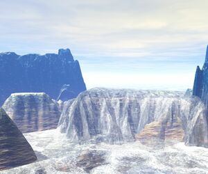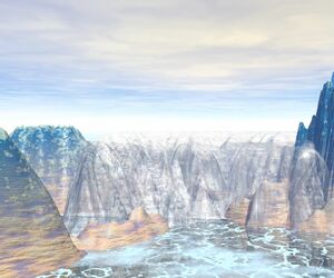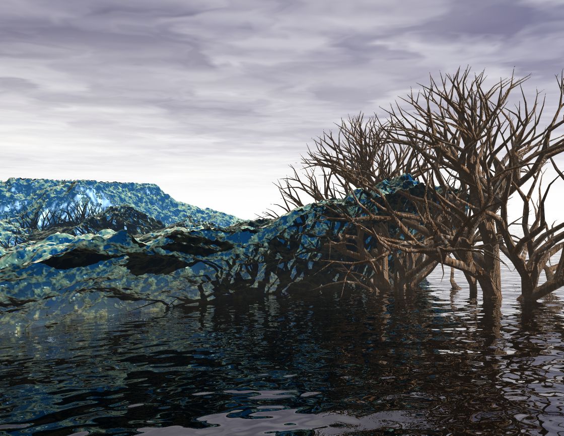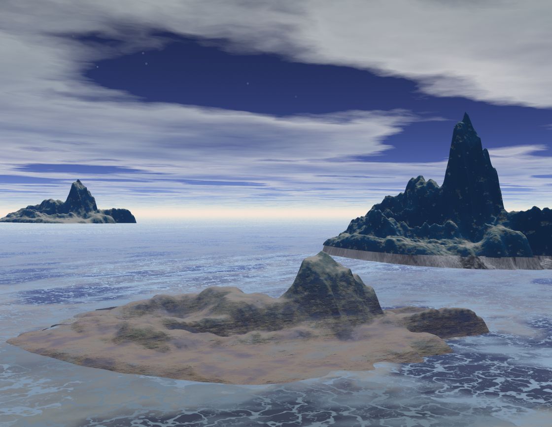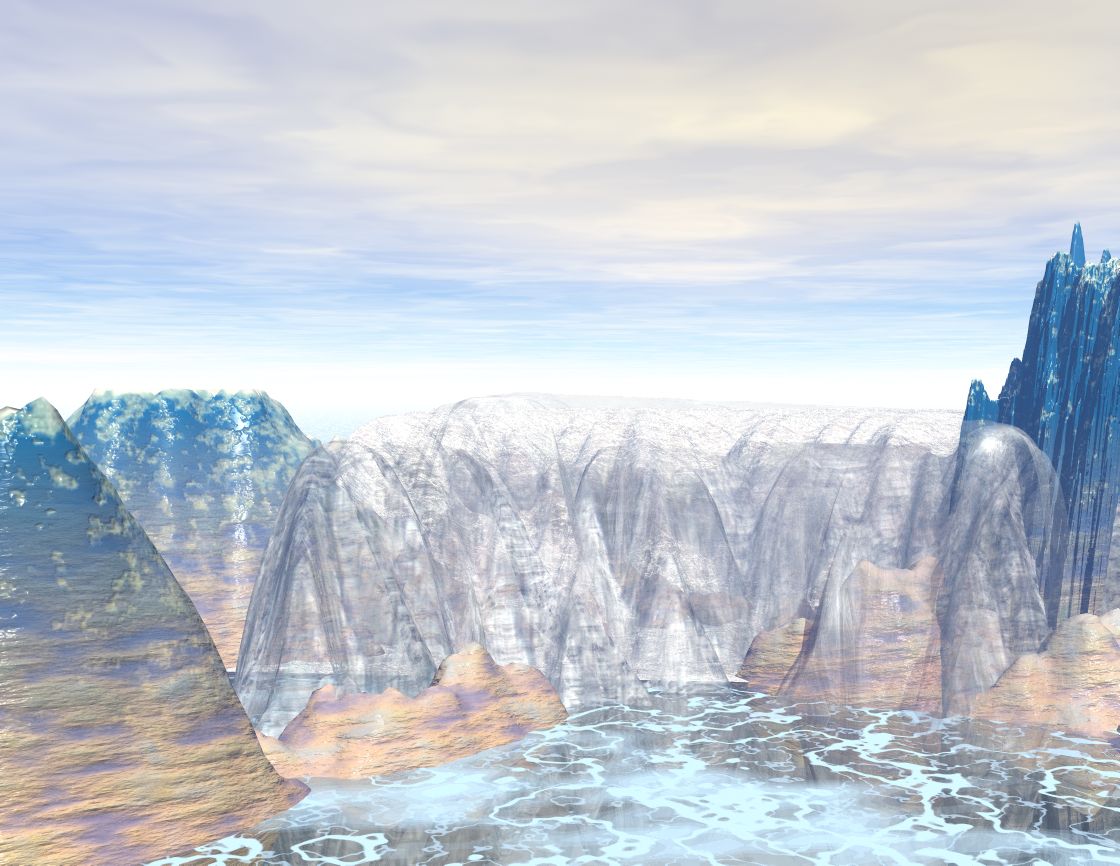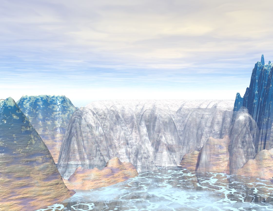 Die Gischt habe ich gepostworkt, alles andere ist Bryce (wobei ich hier auf die Schnelle die Terrains drumherum einfach nur dupliziert habe, was man so natürlich NICHT machen soll *g*).