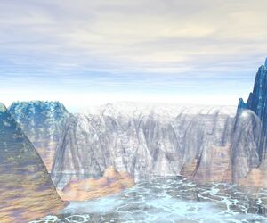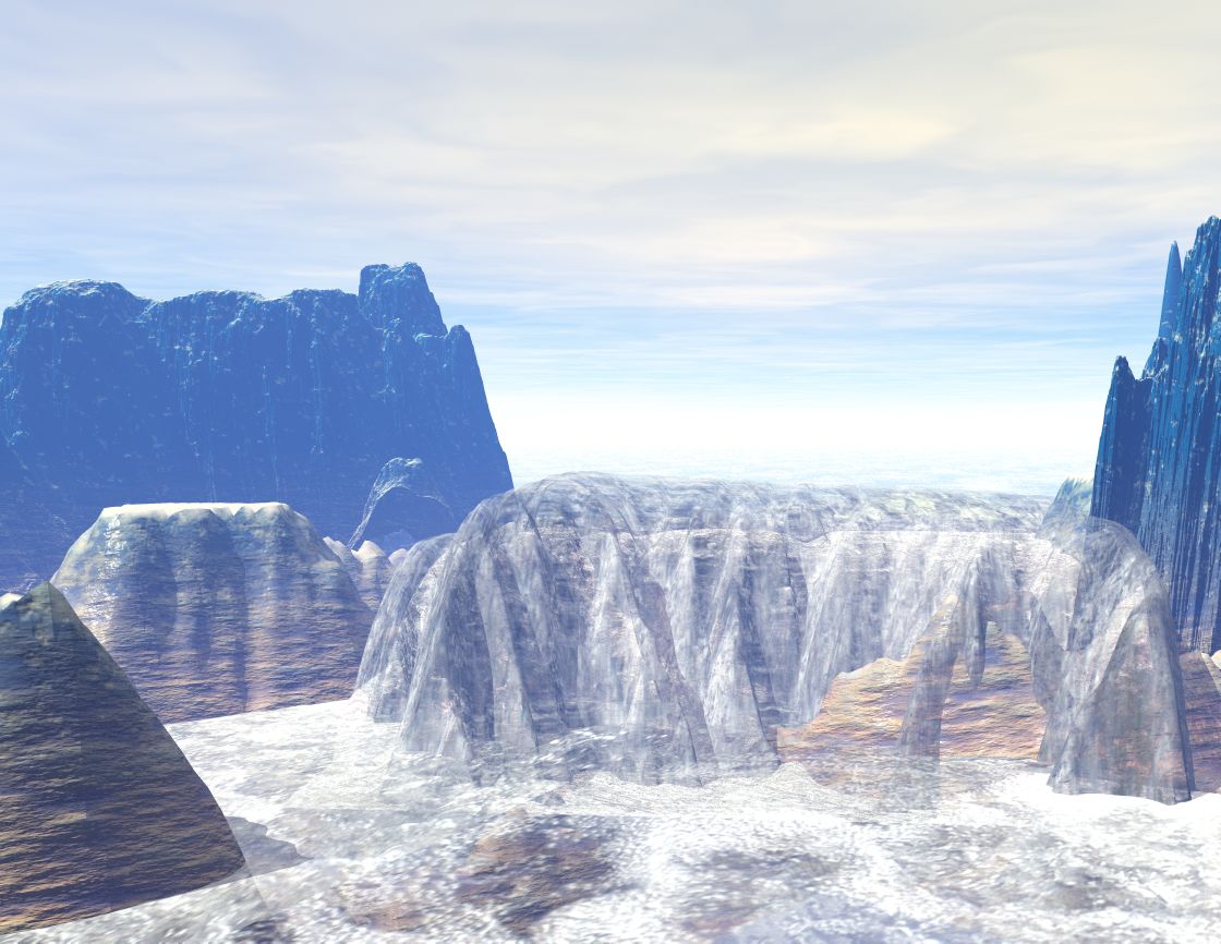 Ich hab das ganze noch mal ein wenig veränderte , also hier noch eine zweite Variante , wobei die erste wirklich richtig Arbeit gekostet hat, hier nun noch mal mit der gleichen Tex wie das Wasser und die Berge ein wenig versetzt .