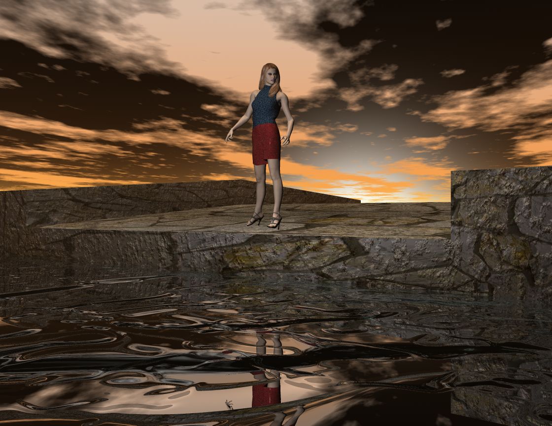 So , nun mal die letzte Ausführung meines Bildes . Ich hab noch eine weitere Wassertex ausprobiert und zusätzlich noch eine negative Lichtquelle mit ins Bild gepackt .