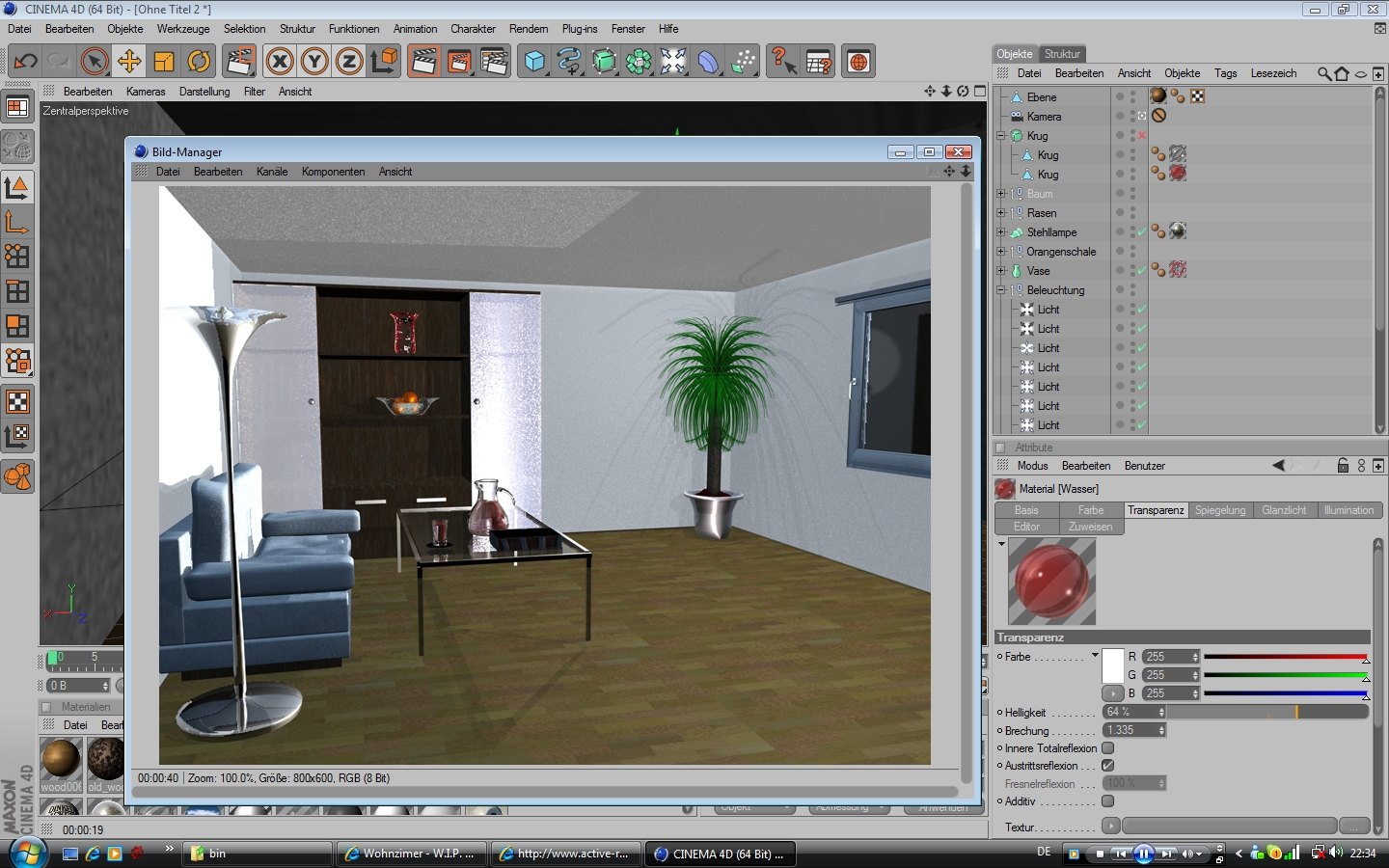 an den Materialien hab ich noch nichts weiter gemacht, ich hab einzig das VraySonnenlicht gesetzt (noch etwas zu tief für meinen geschmack)