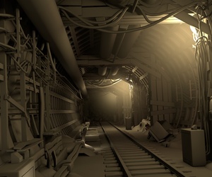 Hier mal ein Fortschritt; ich habe mich mal ans Licht gesetzt und mit den Texturen angefangen, welche noch ziemlich kacheln
