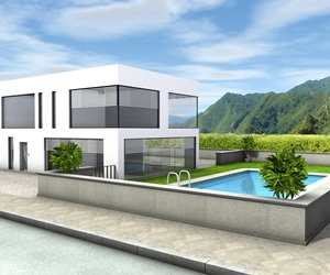 die jalousien haben jetzt farbe, und der pool ist grösser, der war viel zu klein.