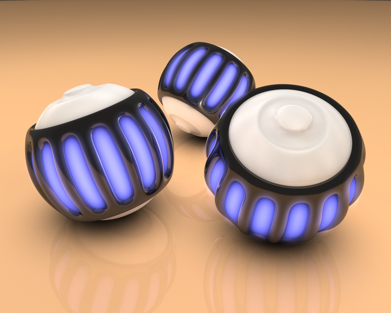 wenn du dir dir rechte Kugel ansiehst dann sind ganz oben drauf kleine Artefakte zu sehen.Die entstehen weil ich dort die Unterteilung zu klein gewählt habe. Wenn man nich weiß wo sind die auch schwer zu sehen.