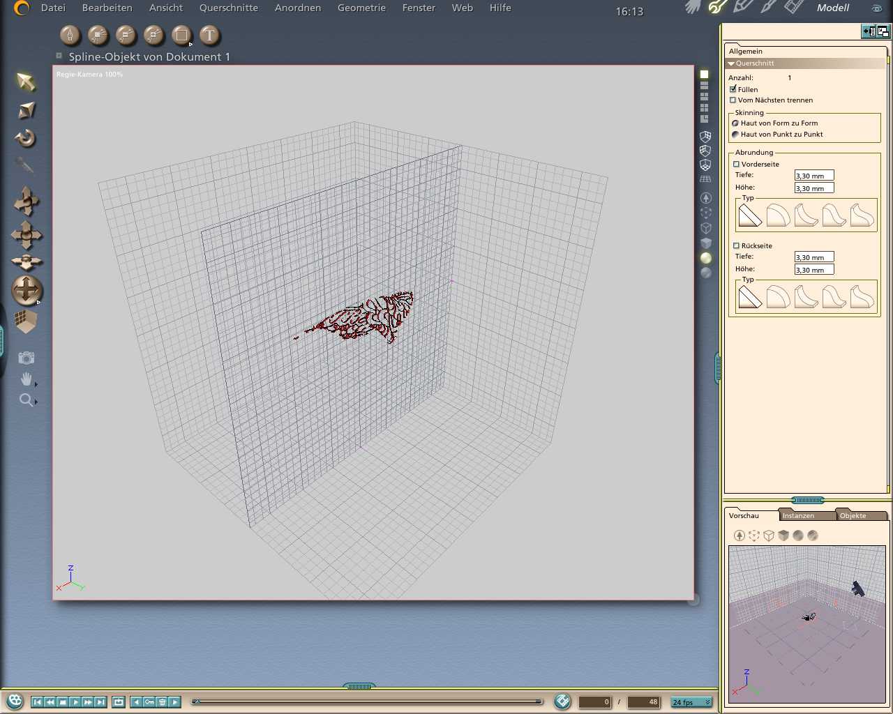 Hi, da Du Bryce und Poser hast, die wie Carrara gemeinsame Wurzeln haben: Hat eines Deiner Programme einen "Spline-Editor" oder "Spline-Objekt" das aussieht wie Bild1?