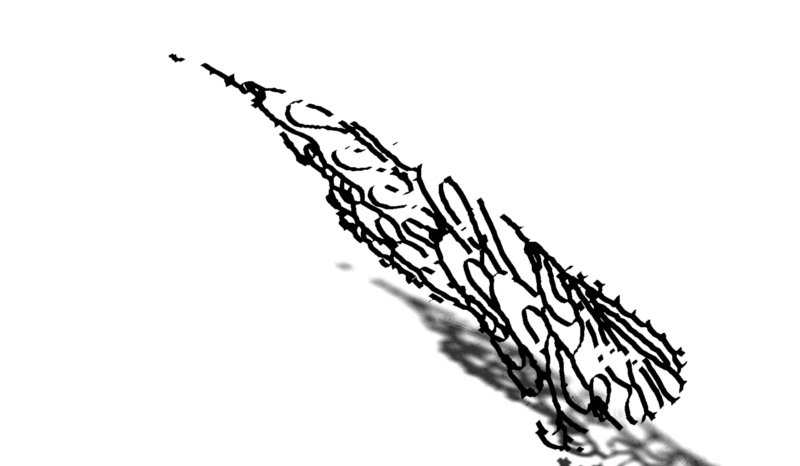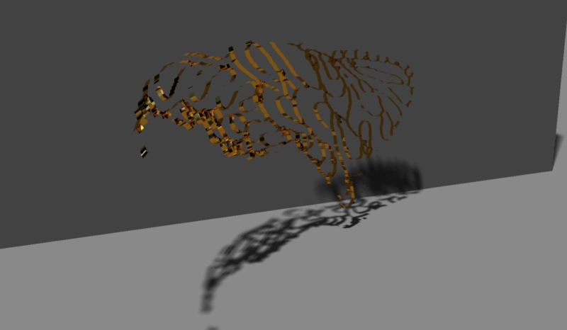 Willst Du das Ganze dann so als ein 3D-Objekt haben, wie von mir oben im Besispiel gezeigt, muss das Bild in S/W konvertiert werden. Sämtliche Grauwerte müssen raus! Das erfordert etwas Bastelei. Danach muss es vectorisiert werden. Deswegen ein Zweitonbild, da sonst das Vectorisierungsergebnis nicht taugt. Je nach Vectrorisierungsmethode, Mittellinie oder Umriss, erhälst Du dann das, was Du in Dein 3D-Programm importieren kannst, was daraus dann hoffentlich eine vernünftiges Objekt erstellen kann. Als Datenvormat bietet sich ".ai" an. Wenn die Vectorisierung Deiner Wahl Mittellienie ist, musst Du in einem Grafikprogramm einen Umriss hinzufügen, damit das Ganze eine Dicke bekommt. Der Vorteil des nachträglich hinzugefügten Um,risses ist, dass Du da noch etwas mit der Dicke herumspielen kannst.