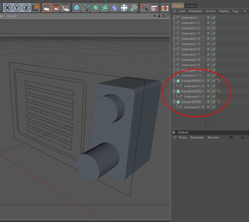 d: Gegebenenfalls aus der Gruppe herausnehmen, neu verbinden usw. und extrudieren, bis der Arzt kommt. ![]()