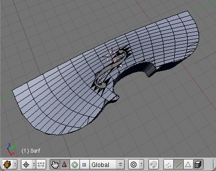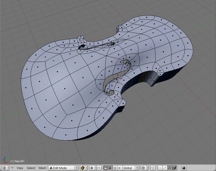 für die f-löcher habe ich erstmal eine seperate plane erstellt, unterteilt und wieder an das hintergrundbild angepasst