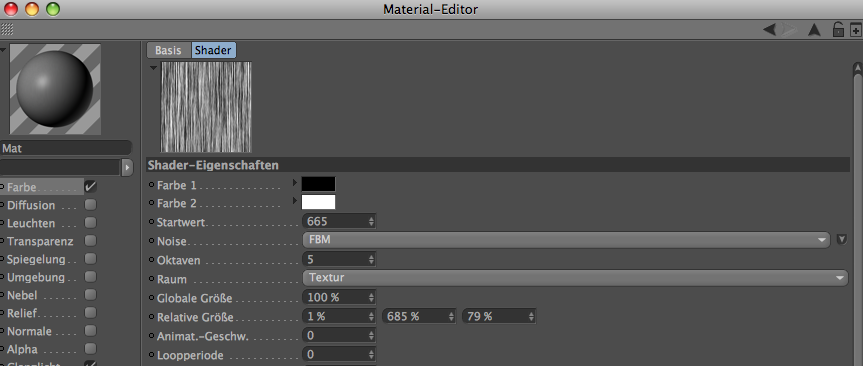Aber wenn du einen diese Streifen mit einem Shader produzieren möchtest, spiel einfach mal mit dem Noise-Shader rum - da gibt es ja verschiedene Art von Noise Shader ... z.B. den FBM.