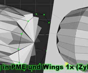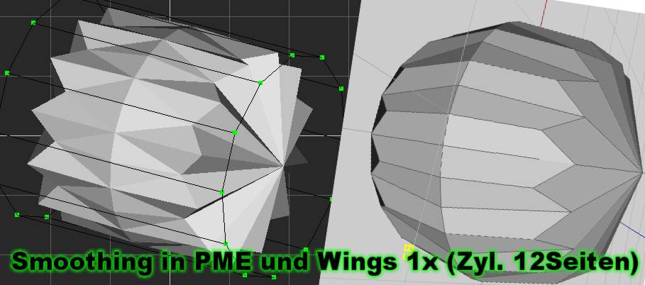 Einmal wird der Unterschied zwischen PME und Wings bei einem gesmoothen Zylinder mit einem Smoothing - Layer gezeigt.