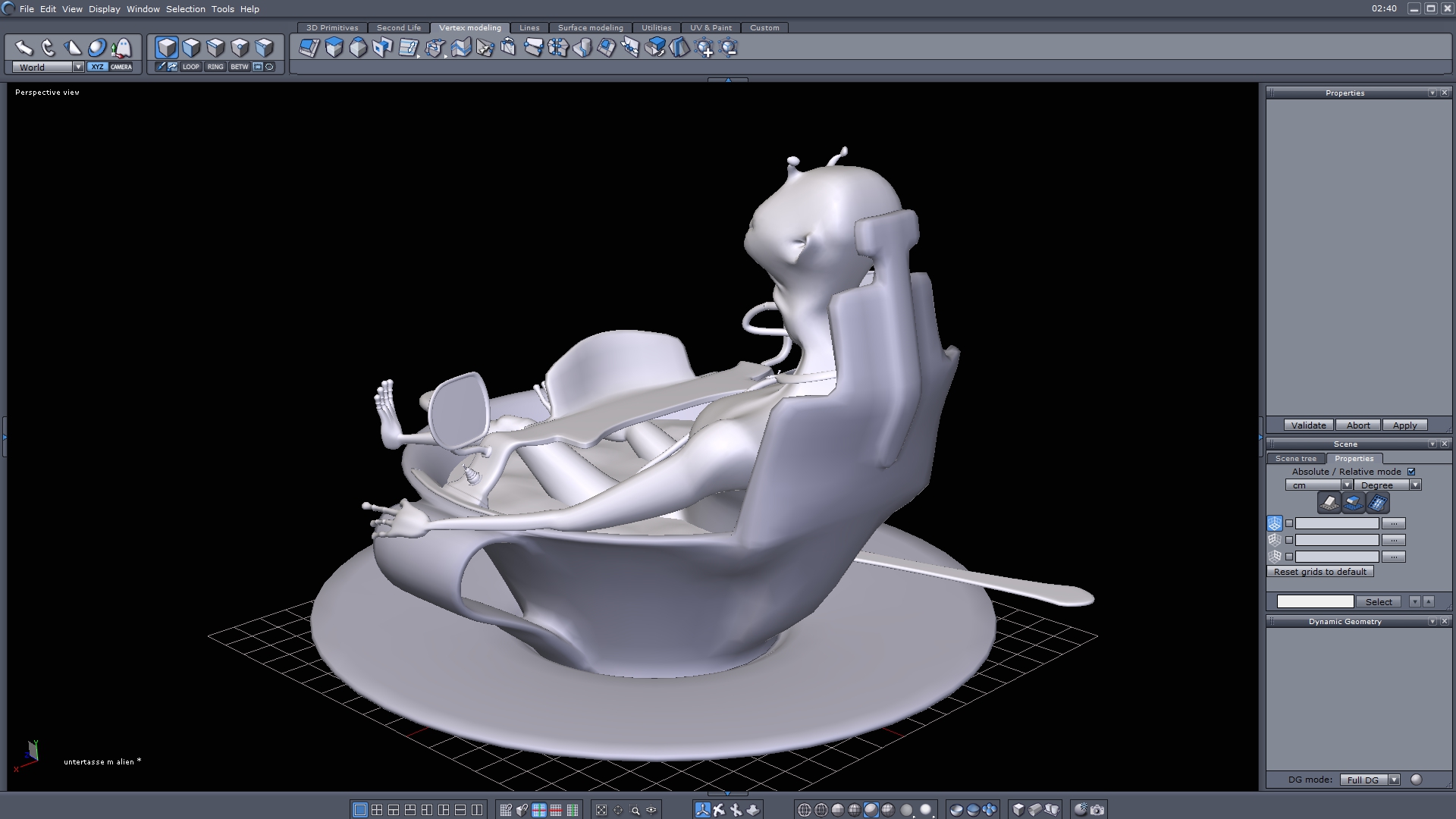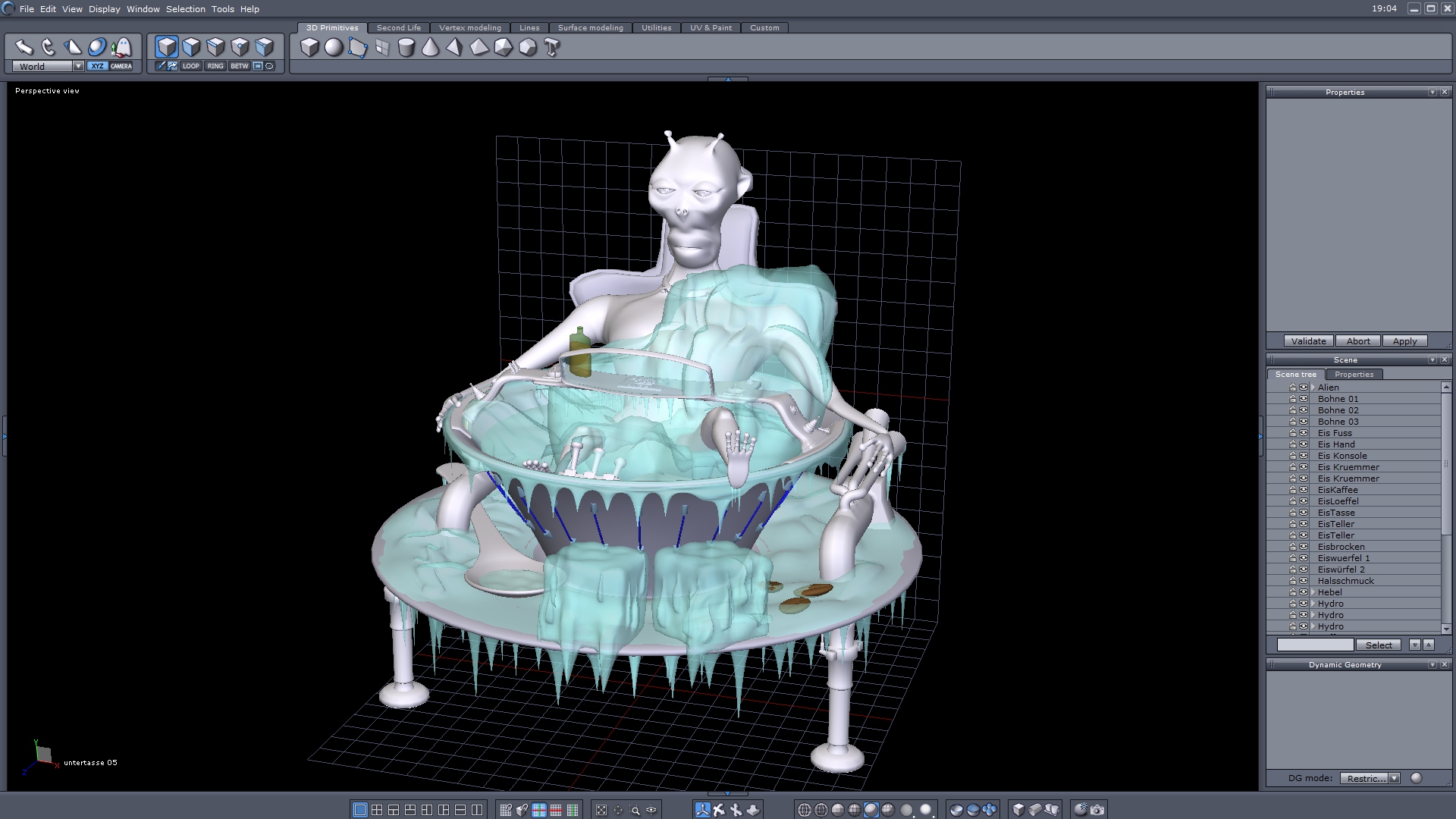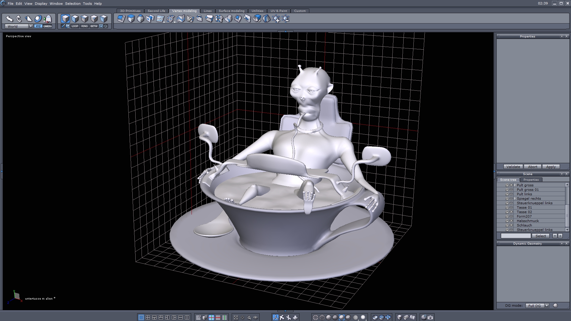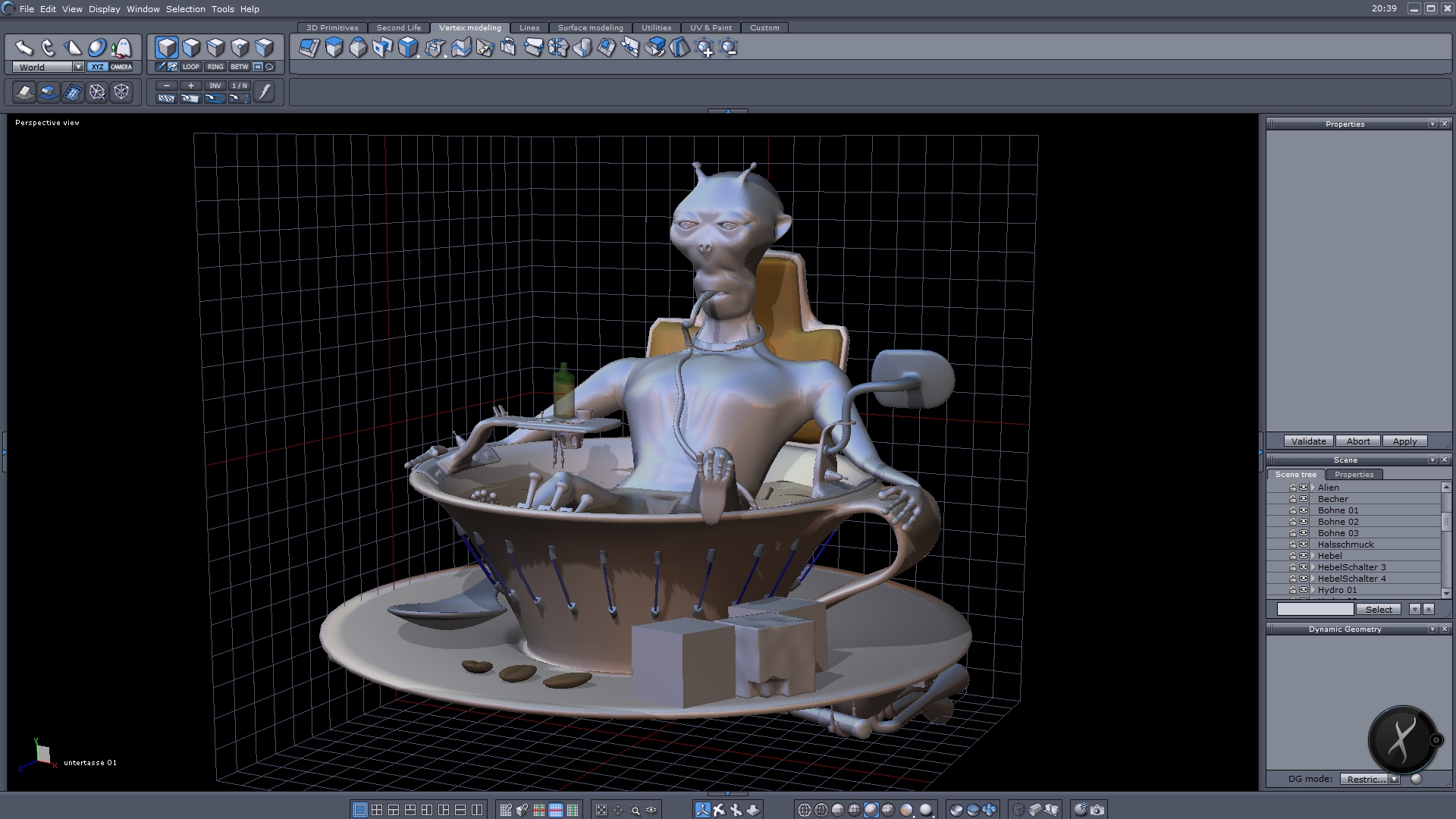 Das Alien ist nicht geriggt und wird somit in Hexagon in Position gebracht. Da muss auch mal der Kopf vom Rumpf getrennt werden und andere Gliedmaßen neu positioniert werden.