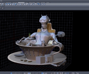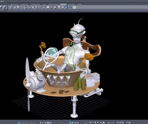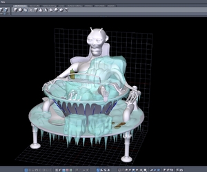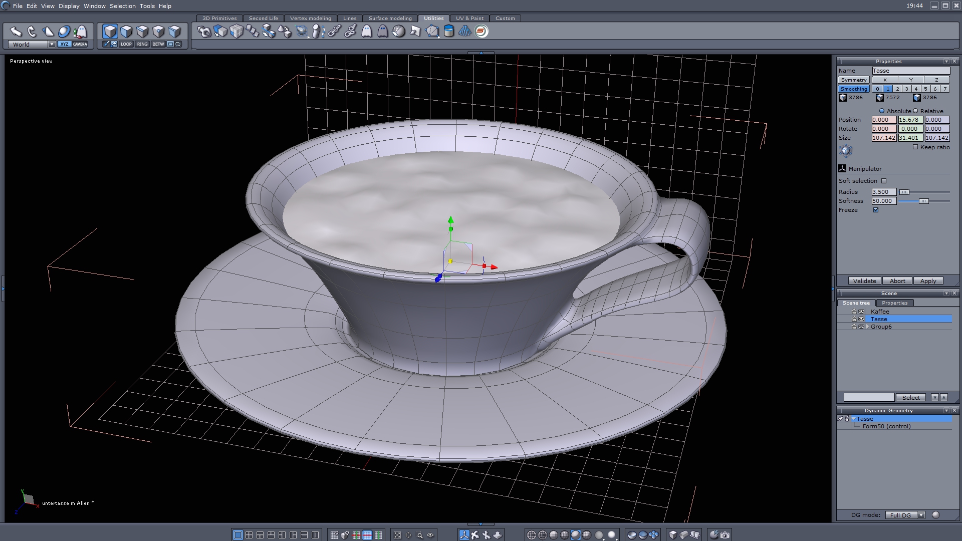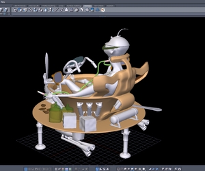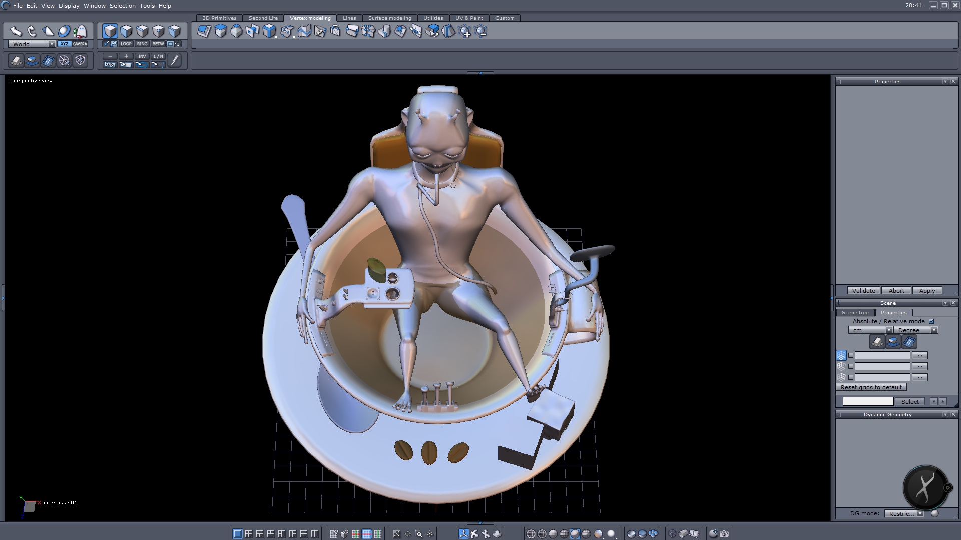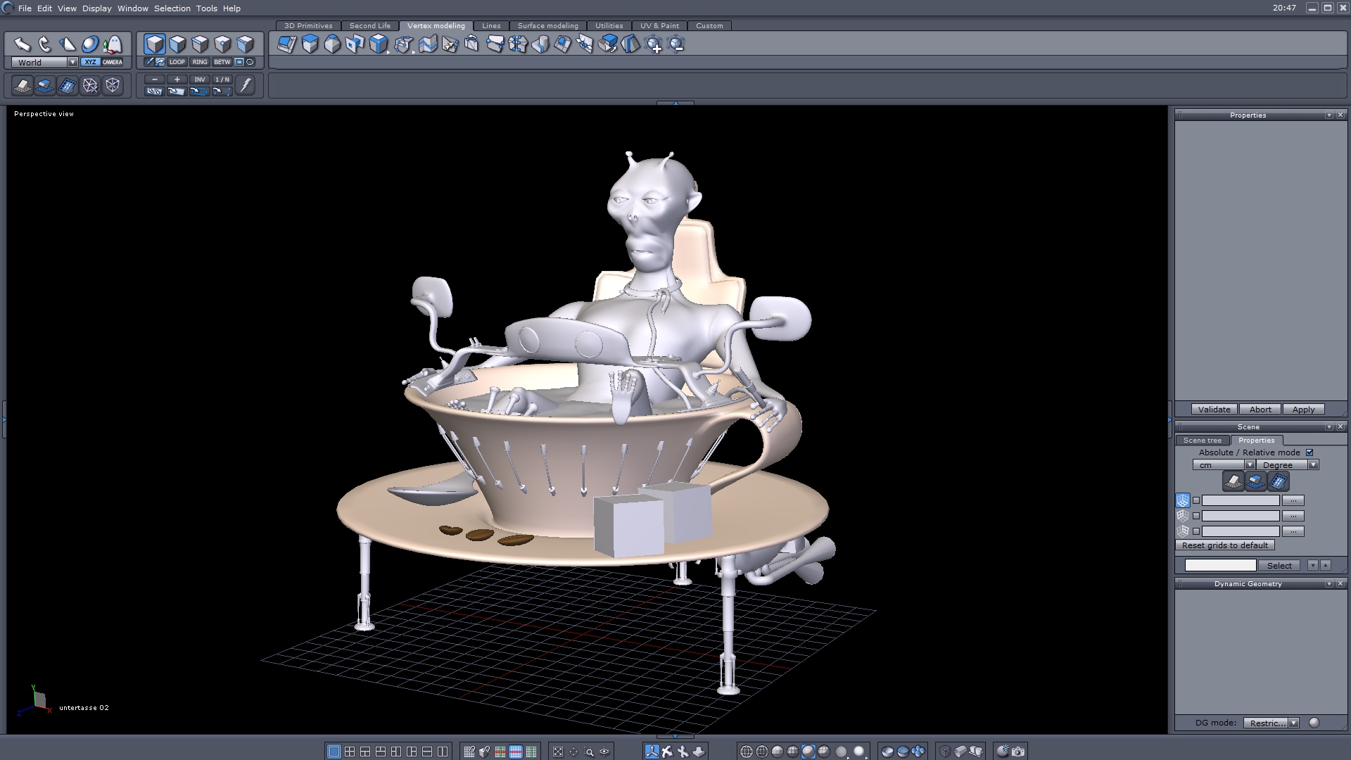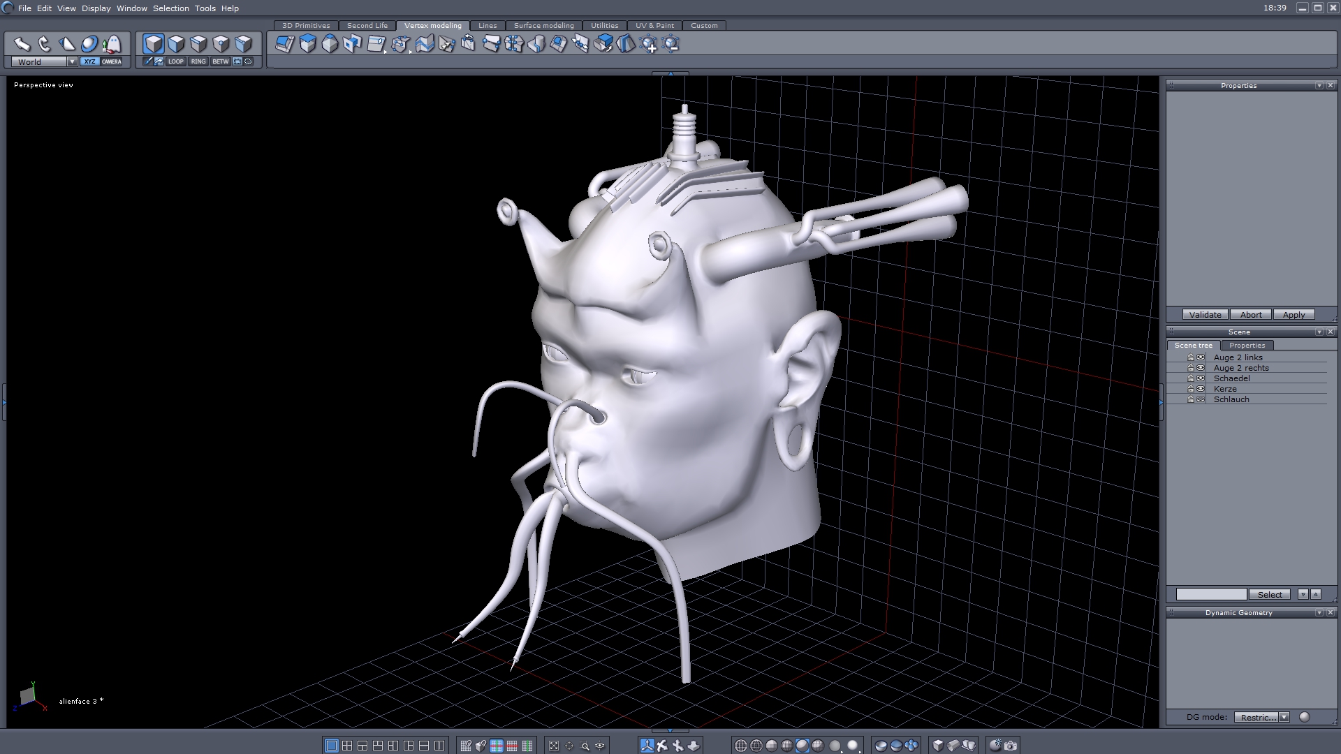 Das Alien ist nicht geriggt und wird somit in Hexagon in Position gebracht. Da muss auch mal der Kopf vom Rumpf getrennt werden und andere Gliedmaßen neu positioniert werden.