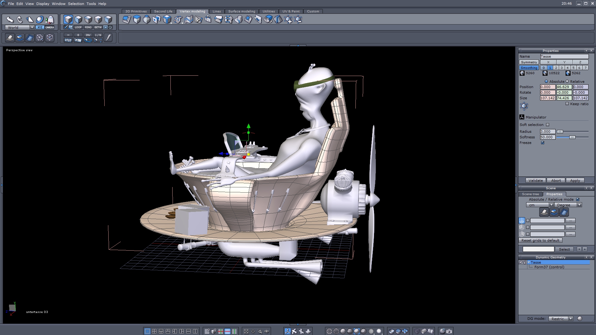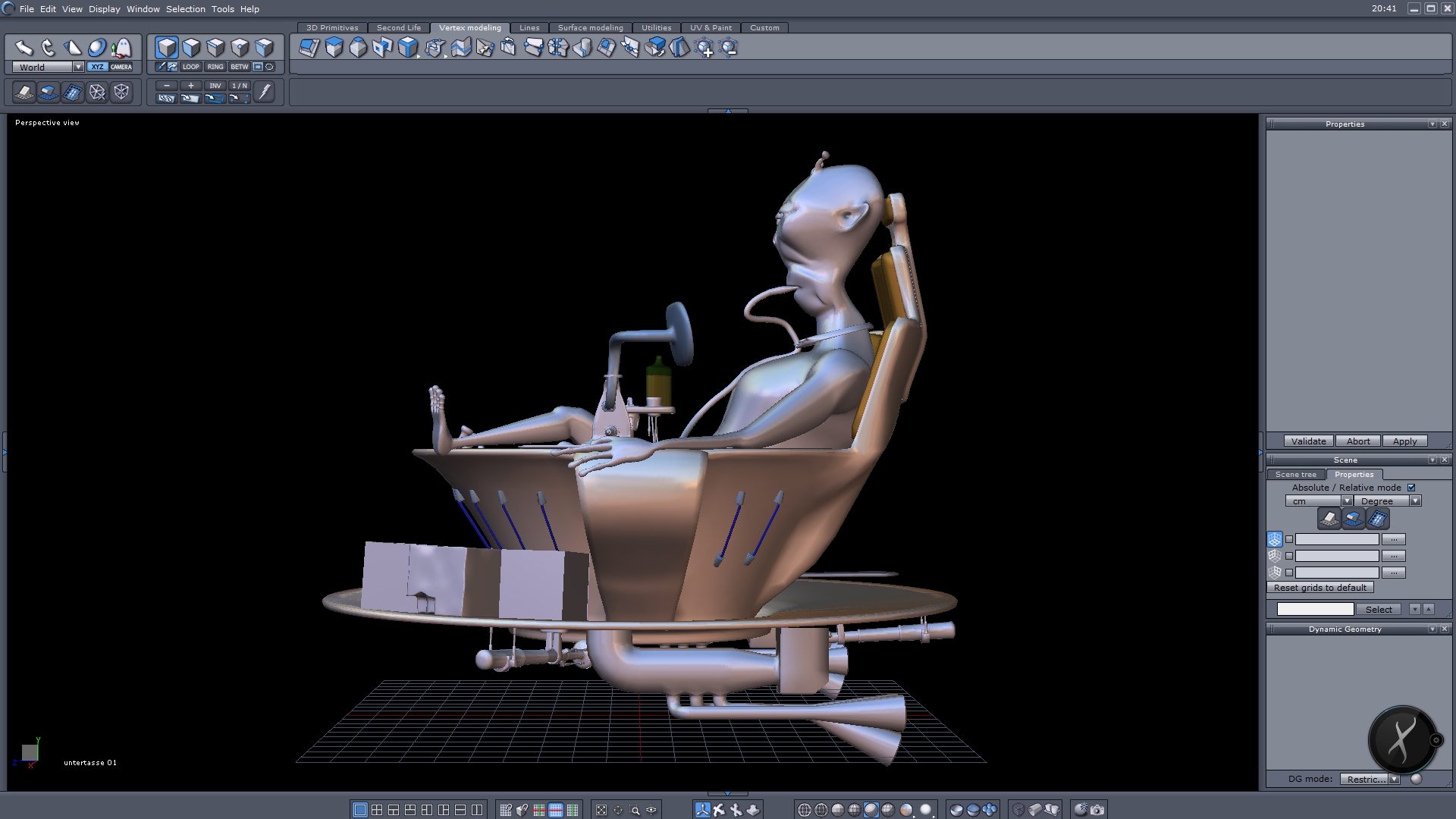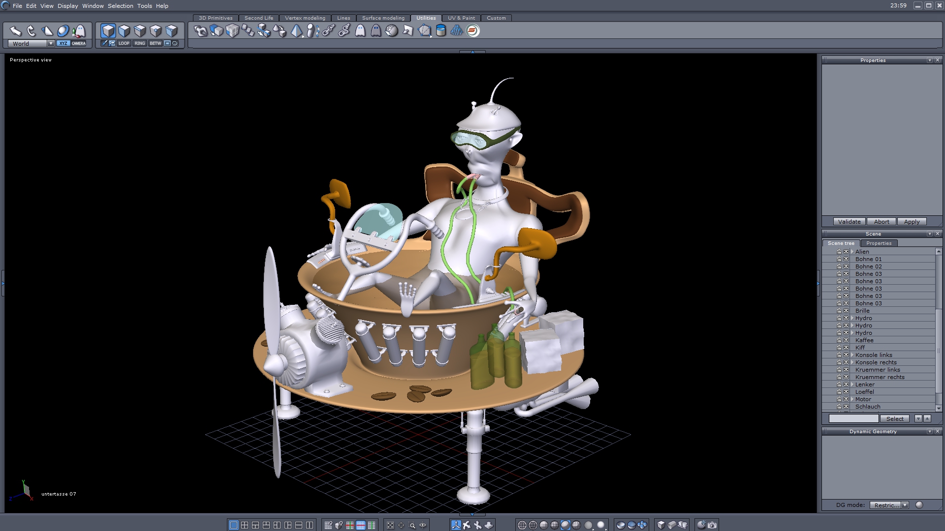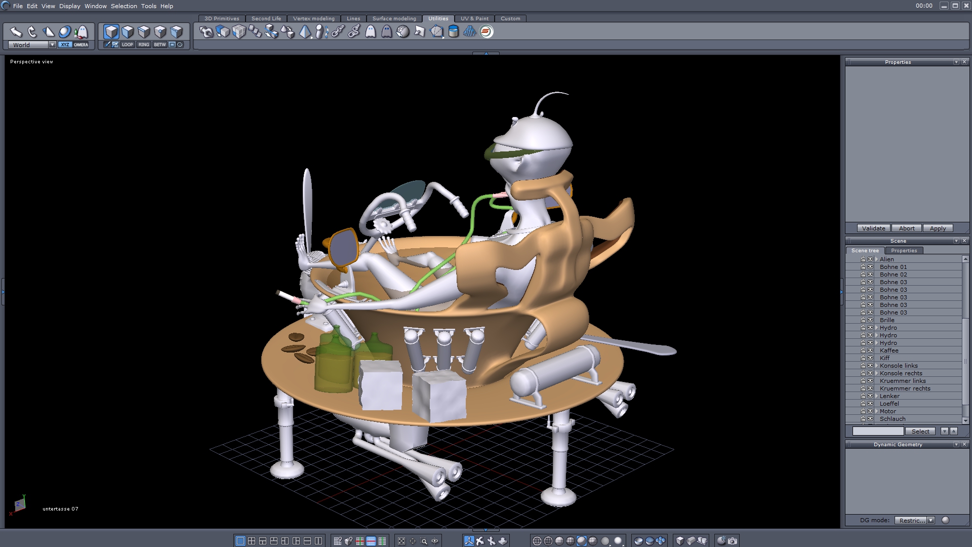 .Hier mal ein Screen von Carrara zu UT05. Und ein paar Render von UT05. Mit nur einer einzigen Lichtquelle ist da nix zu löten.