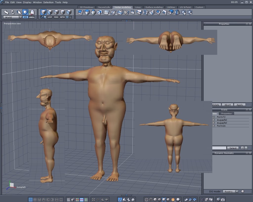 das flutscht ja so richtig bei dir. Wollte gerade den rumpf in alle richtungen drehen, und musste feststellen, das die arbeit auf deinem rechner stattfindet, und nicht auf meinem. Bin gerade selber am modellieren in Hex, und am drehen und bewegen von körpern beschäftigt, das ich nicht gemerkt habe, das es sich um ein screnn handelt.