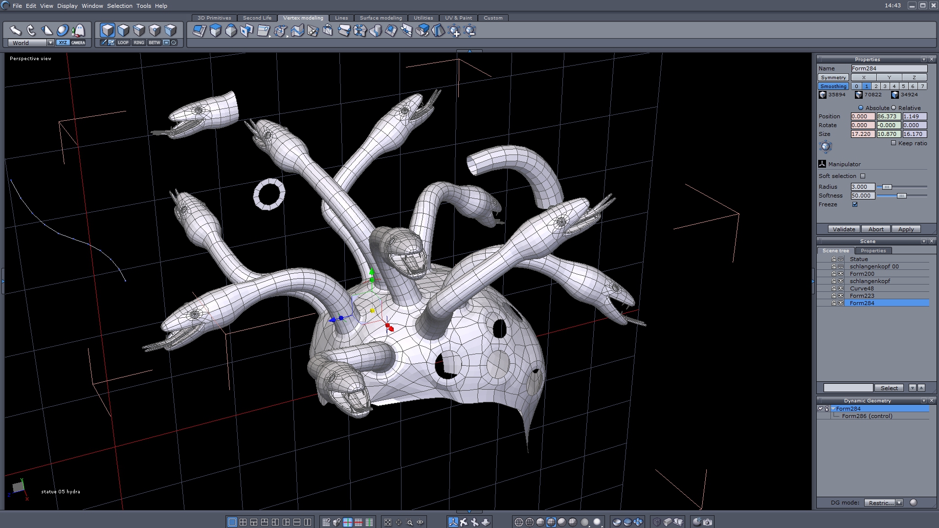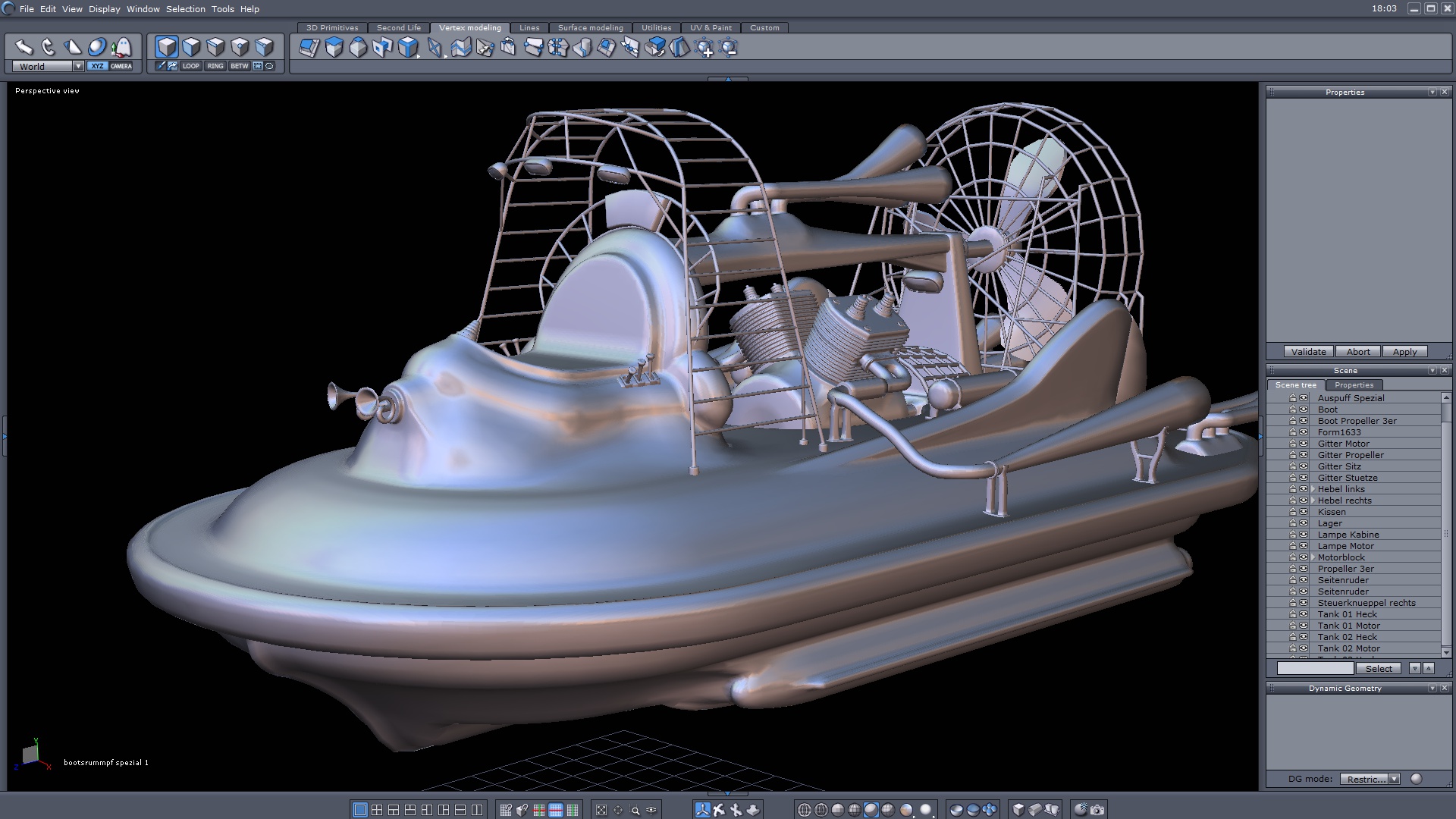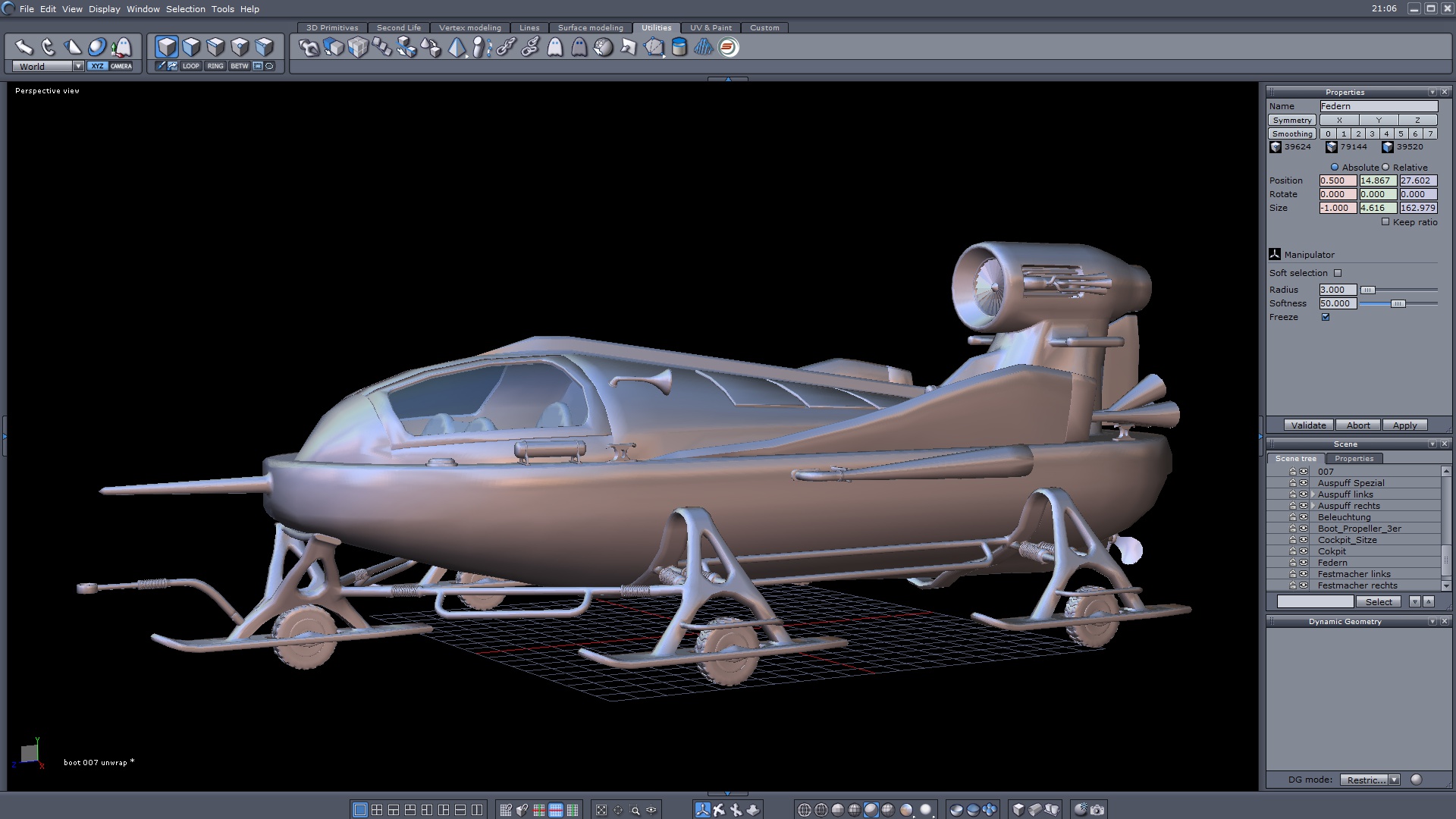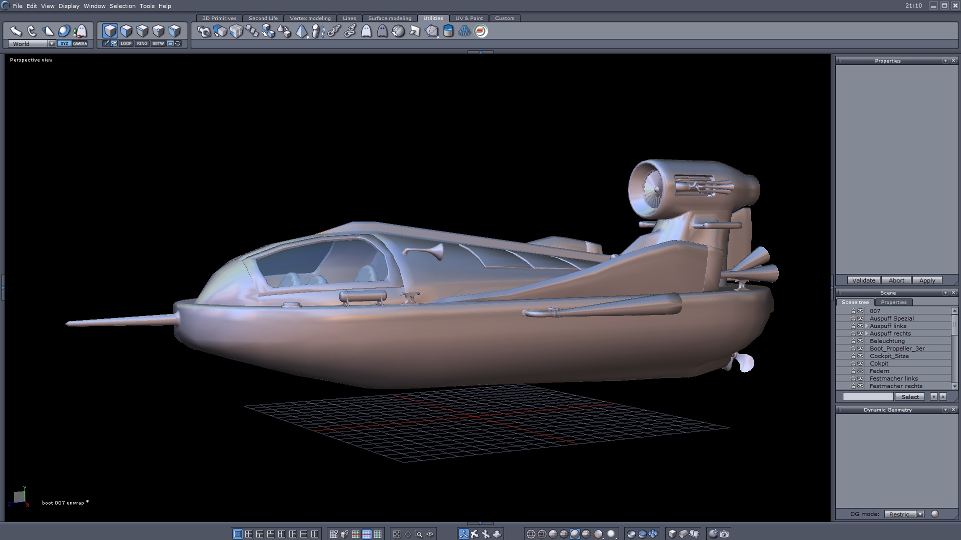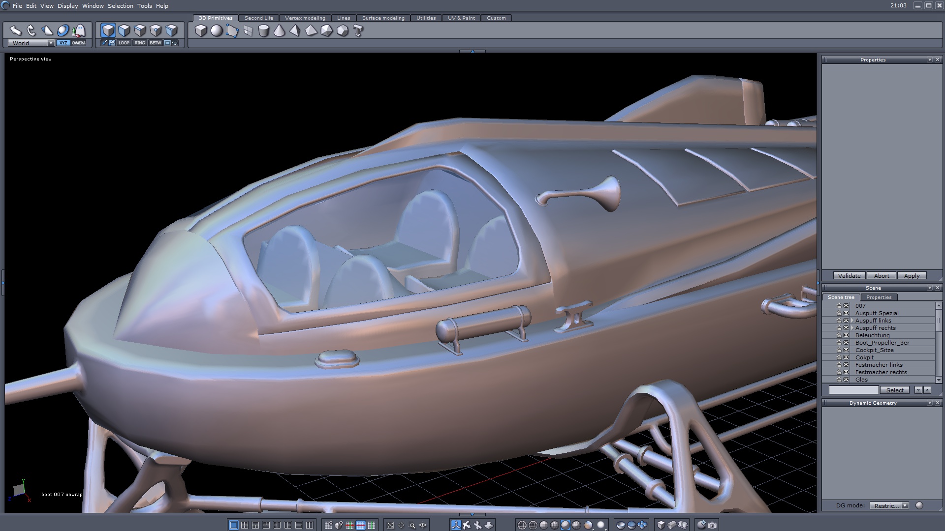 Kushanku: In einer Hexagonversion wurde die Polygonzahl mal angezeigt, musste in den Propertries festgelegt werden. War dann im Modlingfenster rechts unten sichtbar. Und es gab mal ein Lineal mit Scalenunterteilung. War,..... glaub ich die erste Hexagonversion. Und mit der Weiterentwicklung von dem Programm wurde auch einiges entfernt. Das "Lineal" existiert in einer abgewandelten Form, hat mir bisher nicht wirklich geholfen. Um spezielle Winkelpositionen zu messen hab ich mir mal einen Virtuellen Winkelmesser für alle drei Achsen erstellt. Ist aber nur ortogonal ratsam zum messen.
