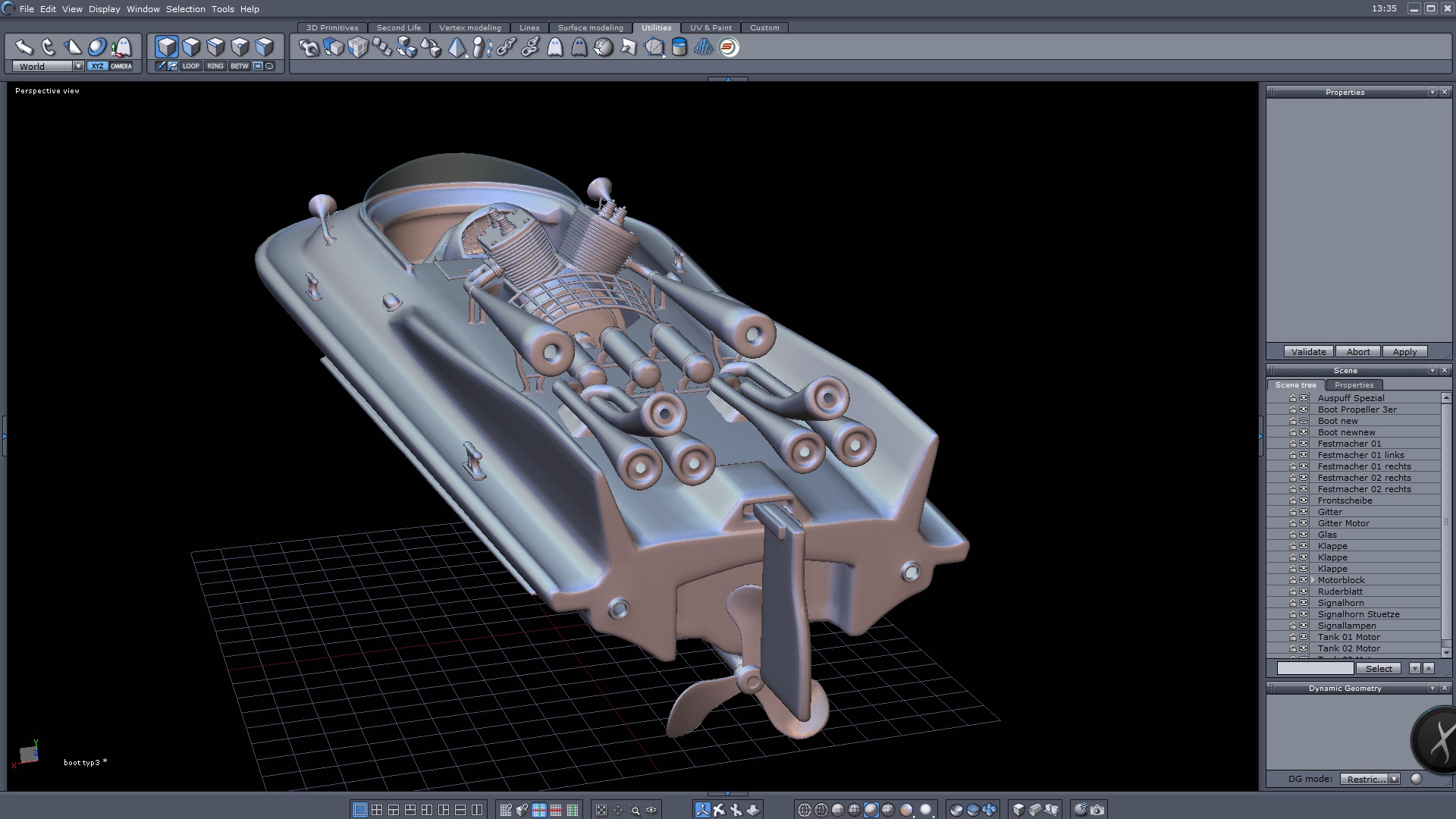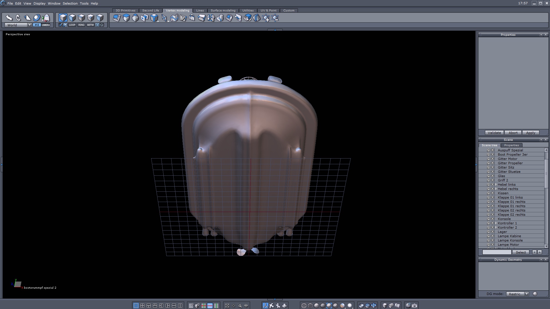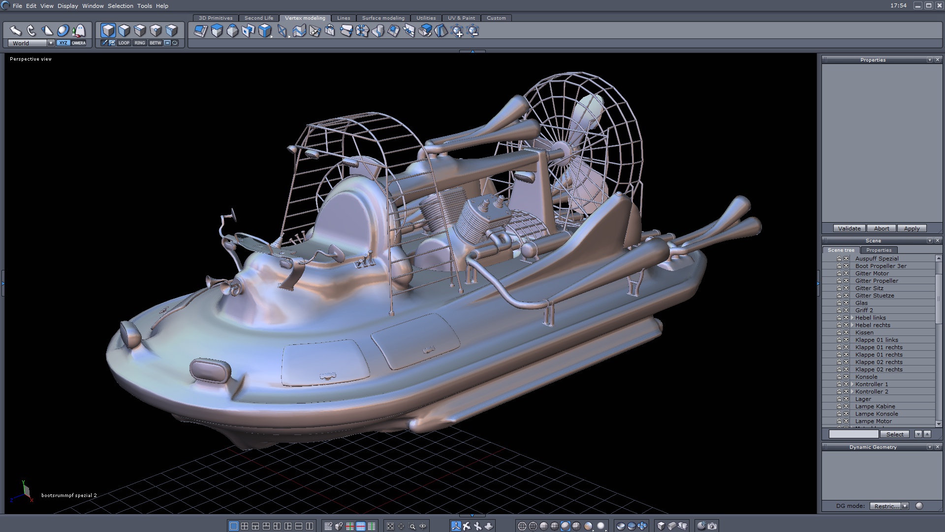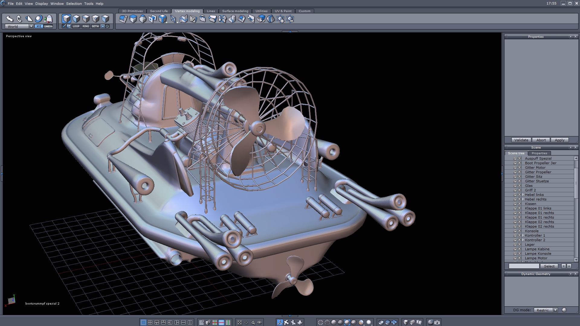 Kushanku: In einer Hexagonversion wurde die Polygonzahl mal angezeigt, musste in den Propertries festgelegt werden. War dann im Modlingfenster rechts unten sichtbar. Und es gab mal ein Lineal mit Scalenunterteilung. War,..... glaub ich die erste Hexagonversion. Und mit der Weiterentwicklung von dem Programm wurde auch einiges entfernt. Das "Lineal" existiert in einer abgewandelten Form, hat mir bisher nicht wirklich geholfen. Um spezielle Winkelpositionen zu messen hab ich mir mal einen Virtuellen Winkelmesser für alle drei Achsen erstellt. Ist aber nur ortogonal ratsam zum messen.