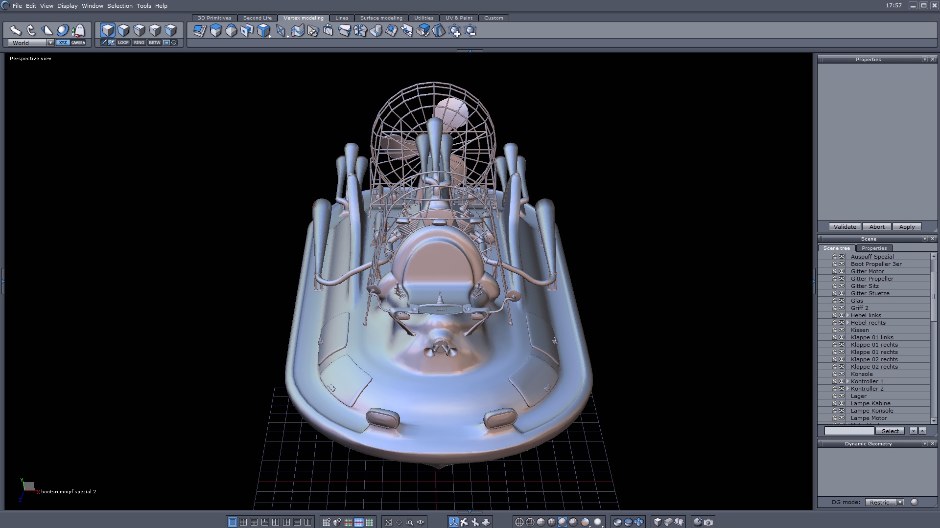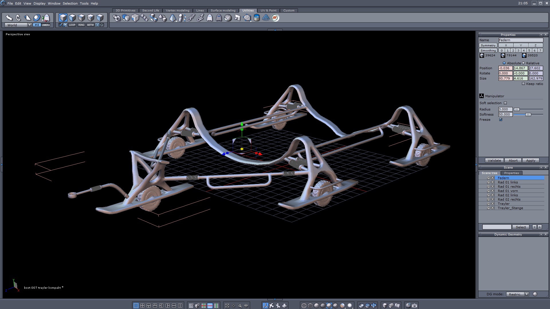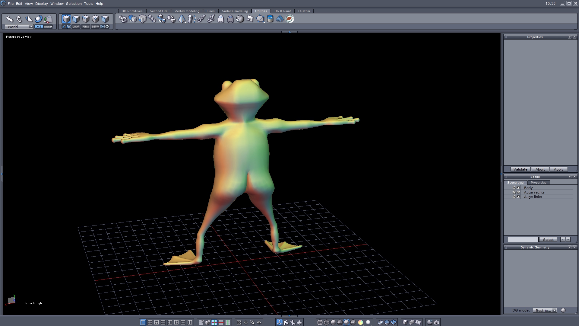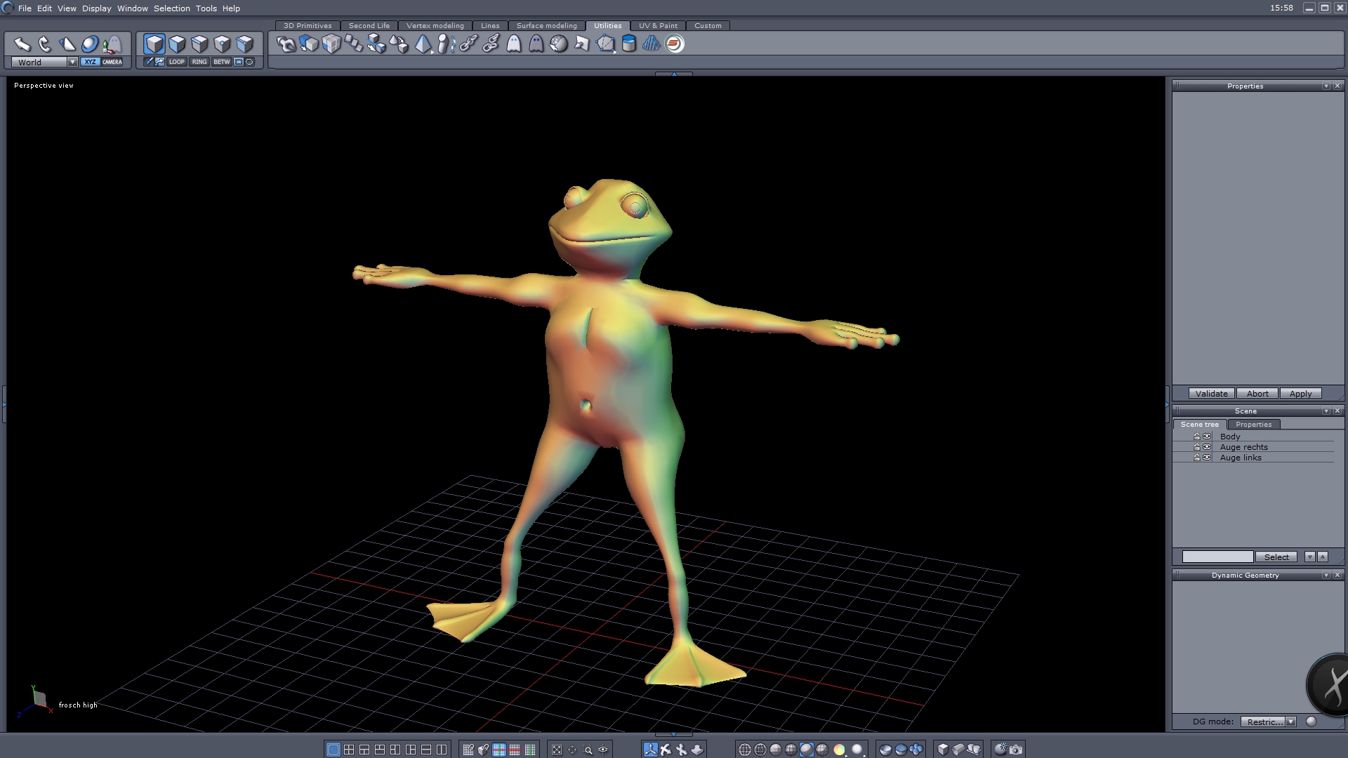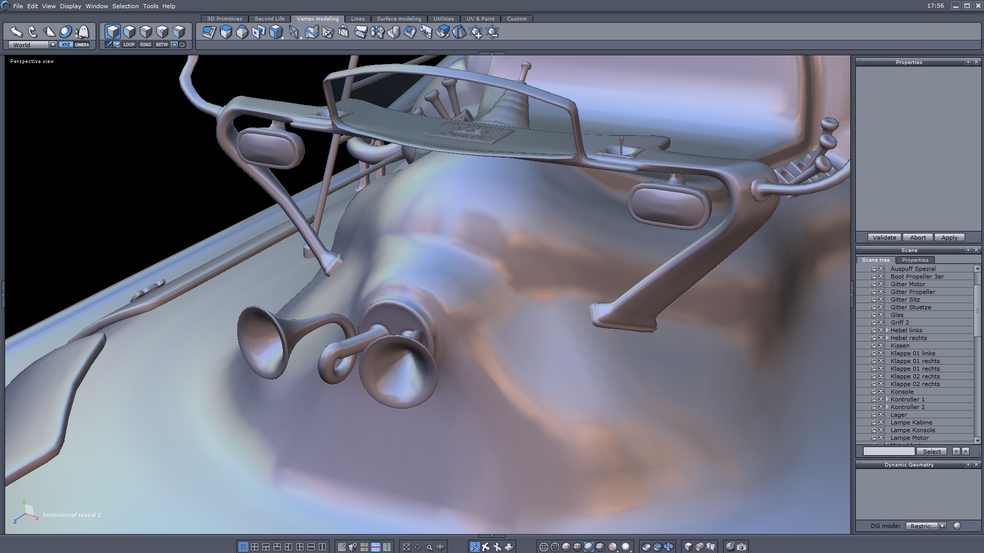 Kushanku: In einer Hexagonversion wurde die Polygonzahl mal angezeigt, musste in den Propertries festgelegt werden. War dann im Modlingfenster rechts unten sichtbar. Und es gab mal ein Lineal mit Scalenunterteilung. War,..... glaub ich die erste Hexagonversion. Und mit der Weiterentwicklung von dem Programm wurde auch einiges entfernt. Das "Lineal" existiert in einer abgewandelten Form, hat mir bisher nicht wirklich geholfen. Um spezielle Winkelpositionen zu messen hab ich mir mal einen Virtuellen Winkelmesser für alle drei Achsen erstellt. Ist aber nur ortogonal ratsam zum messen.