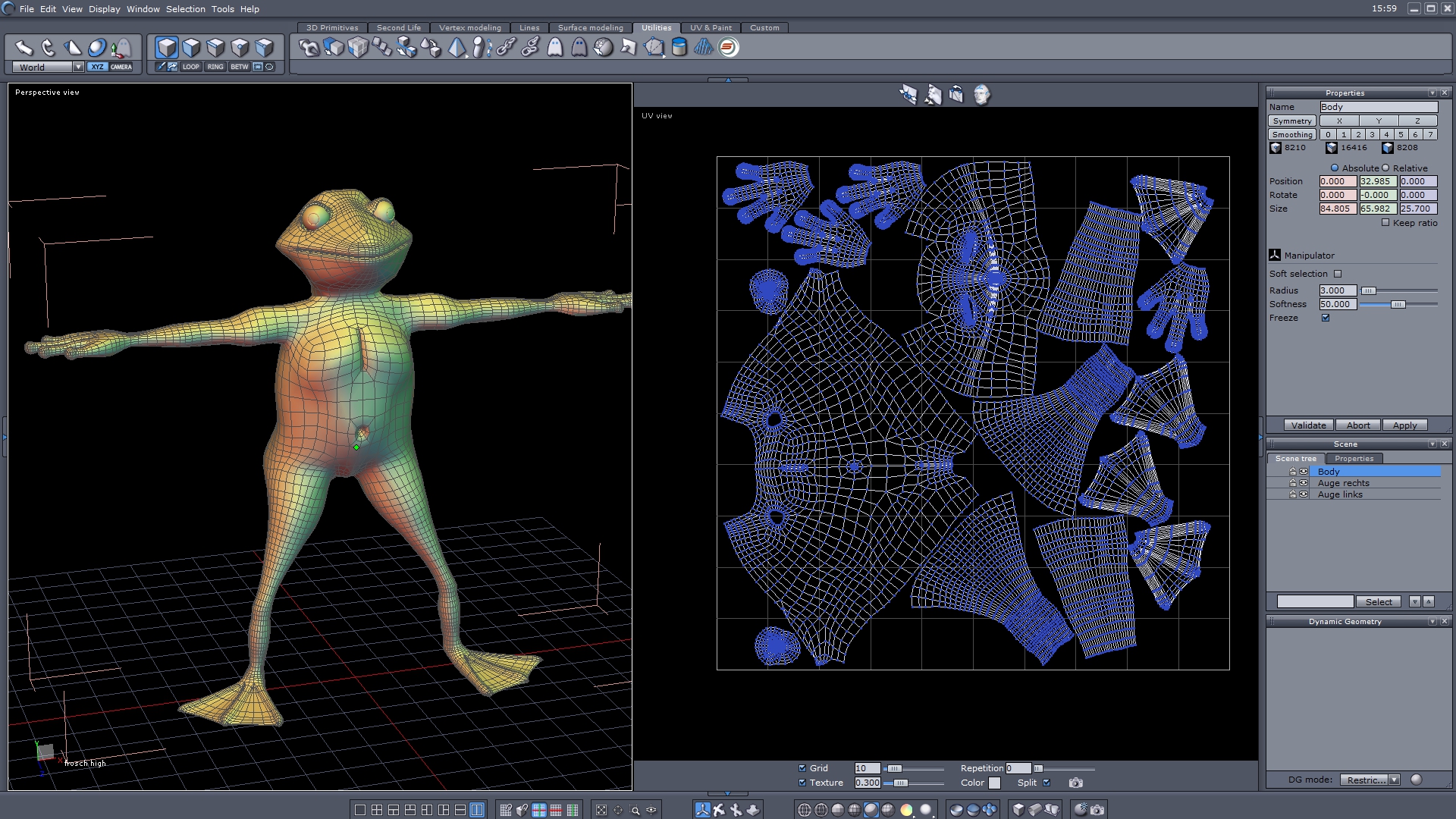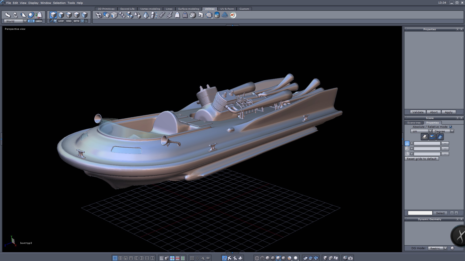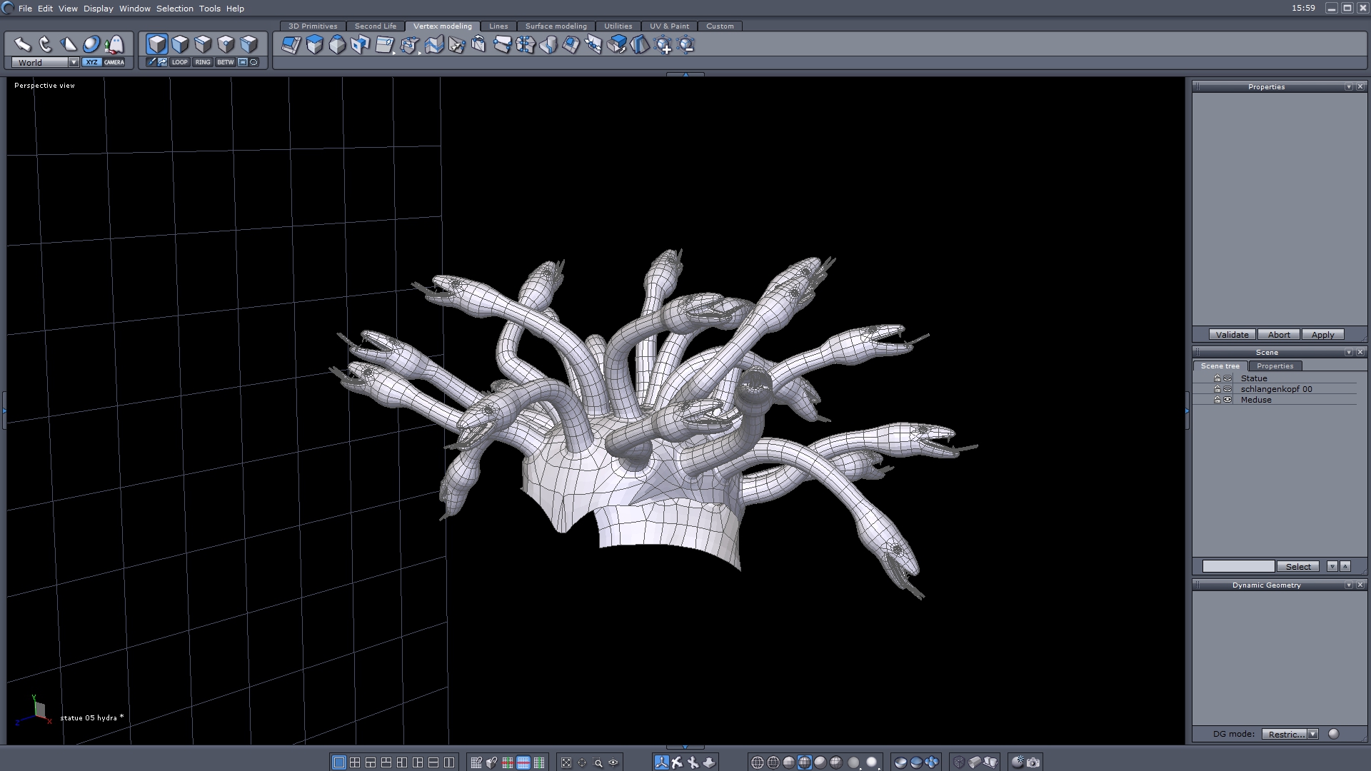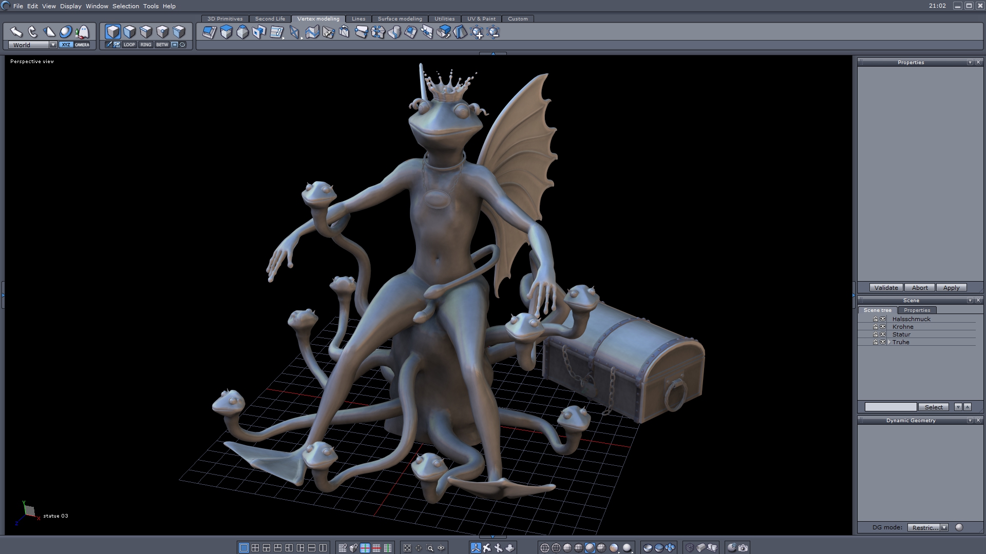 Kushanku: In einer Hexagonversion wurde die Polygonzahl mal angezeigt, musste in den Propertries festgelegt werden. War dann im Modlingfenster rechts unten sichtbar. Und es gab mal ein Lineal mit Scalenunterteilung. War,..... glaub ich die erste Hexagonversion. Und mit der Weiterentwicklung von dem Programm wurde auch einiges entfernt. Das "Lineal" existiert in einer abgewandelten Form, hat mir bisher nicht wirklich geholfen. Um spezielle Winkelpositionen zu messen hab ich mir mal einen Virtuellen Winkelmesser für alle drei Achsen erstellt. Ist aber nur ortogonal ratsam zum messen.