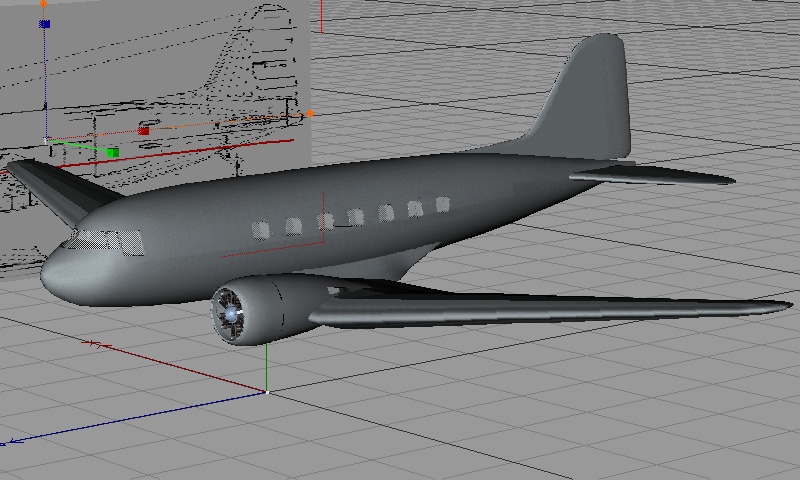 durch den Bericht, im letzten Active-Rendering, über die Flugzeugmodellierung, hab´ich mir gedach, das versuch ich auch. Da die Fliegerei sowieso zu meinen Hobbys gehört, war es also naheliegend da was zu tun. Nun bin ich also dabei eine DC-3 C-47, oder zumindest was Ähnliches, zu modellieren.