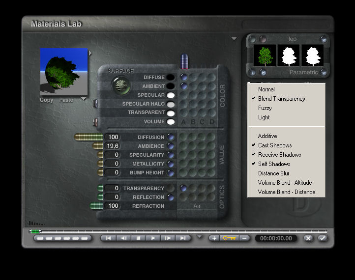 (Wenn ich auf "additive" stelle, wird der Baum weiß. Da hilft das Runterregeln von diffuse auch nix) -
