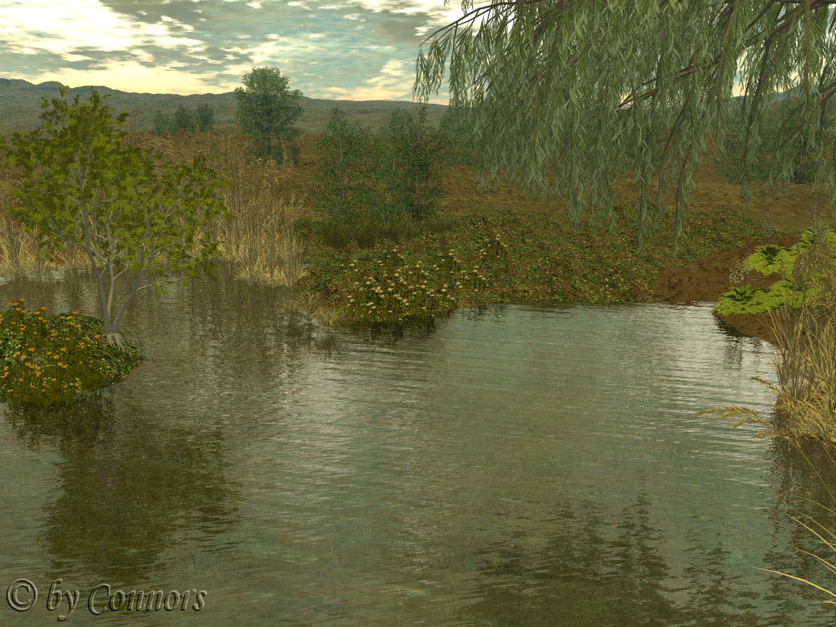 Mir fällt immer wieder auf, dass Vue-Bilder irgendwie ein anderes Licht haben als Bryce-Bilder, dadurch brillianter wirken, und auch die Handhabung von Grünzeug aller Art leichter zu sein scheint.