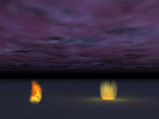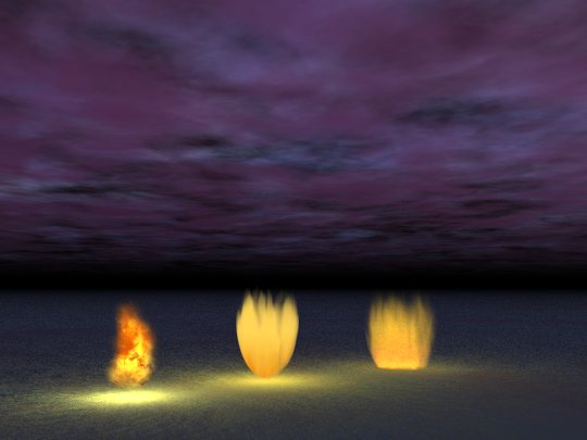 @Space: die linke Flamme ist nach deinem Prinzip gemacht. Volumetrische Welt habe ich allerdings weggelassen, weil man dann die Ränder der Sphäre gesehen hätte (warum eigentlich?