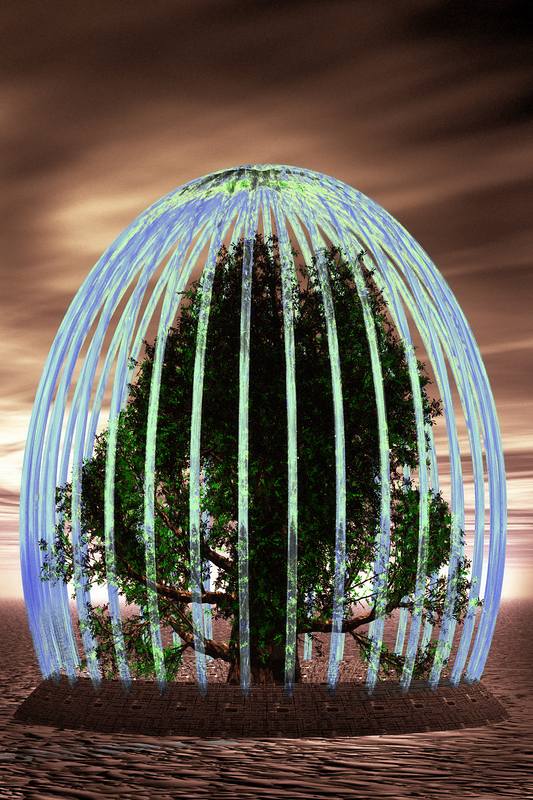 Dann habe ich es mit einem einem Käfig versucht. Ich wollte den Käfig erst aus so einer Art Kraftfeldlinien erzeugen. das geht zwar im Bryce. aber nach dem mein Rechner nach 24 Stunden immer noch bei 21% AA stand, habe ich das Rendern abgebrochen :gaehn.