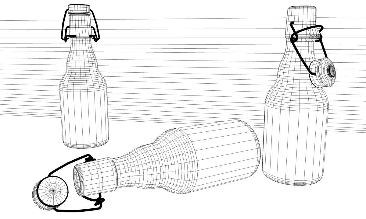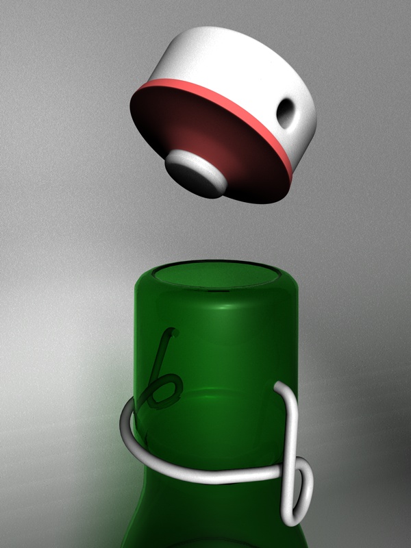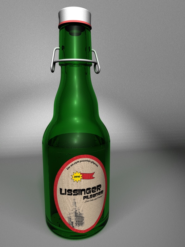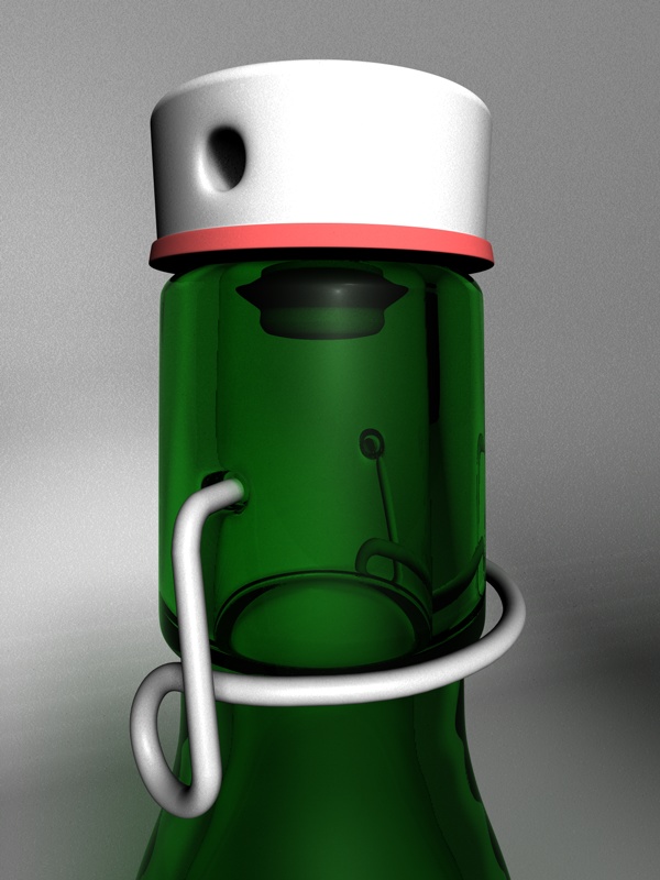 Die Flaschen sind nun mal leider definitiv zu dick, da beißt die Maus keinen Faden ab, aber ich betrachte das ganze als Übung, hier änder ich jetzt nix mehr, aber die nächsten Flaschen werden besser, versprochen! Was mich irgendwie an dem Ganzen stört, ist, dass es so aussieht, als wäre die Flasche zwischen Innen- und Aussenwand hohl, obwohl ich den korrekten Brechungsindex für Glas verwendet habe.