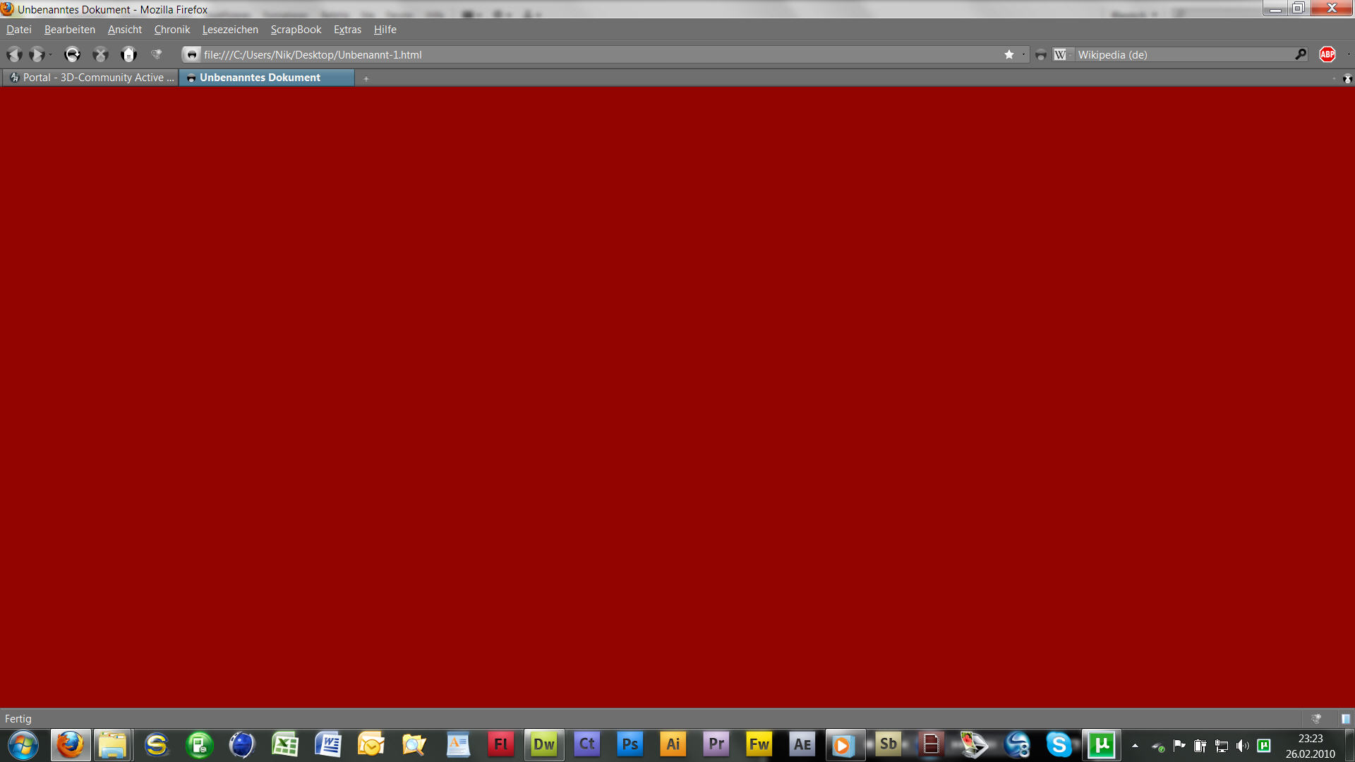 Alles anzeigen<!DOCTYPE html PUBLIC "-//W3C//DTD XHTML 1.0 Transitional//EN" "http://www.w3.org/TR/xhtml1/DTD/xhtml1-transitional.dtd"> <html xmlns="http://www.w3.org/1999/xhtml"> <head> <meta http-equiv="Content-Type" content="text/html; charset=utf-8" /> <title>Unbenanntes Dokument</title> <style type="text/css"> <!-- body { background-color: #900; } --> </style> </head> <body> HIER IST DER SEITENINHALT </body> </html>Dann ist die ganze Seite dunkelrot.