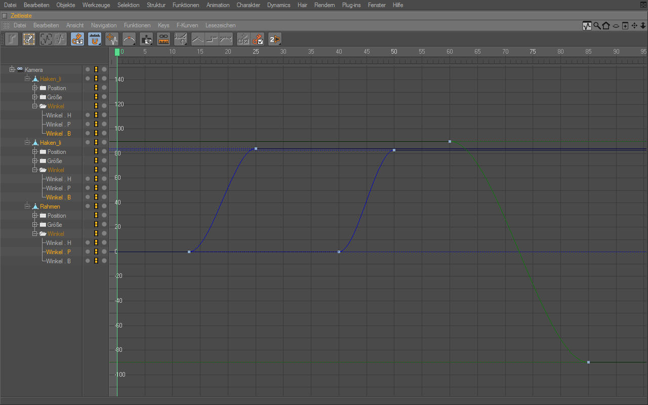 Und hier mal der F- Kurven Editor: Das bedient man im Prinzip wie ein Vektorgrafikprogramm. Das sind Bézierkurven und Du kannst mit den Anfassern den Verlauf verändern.