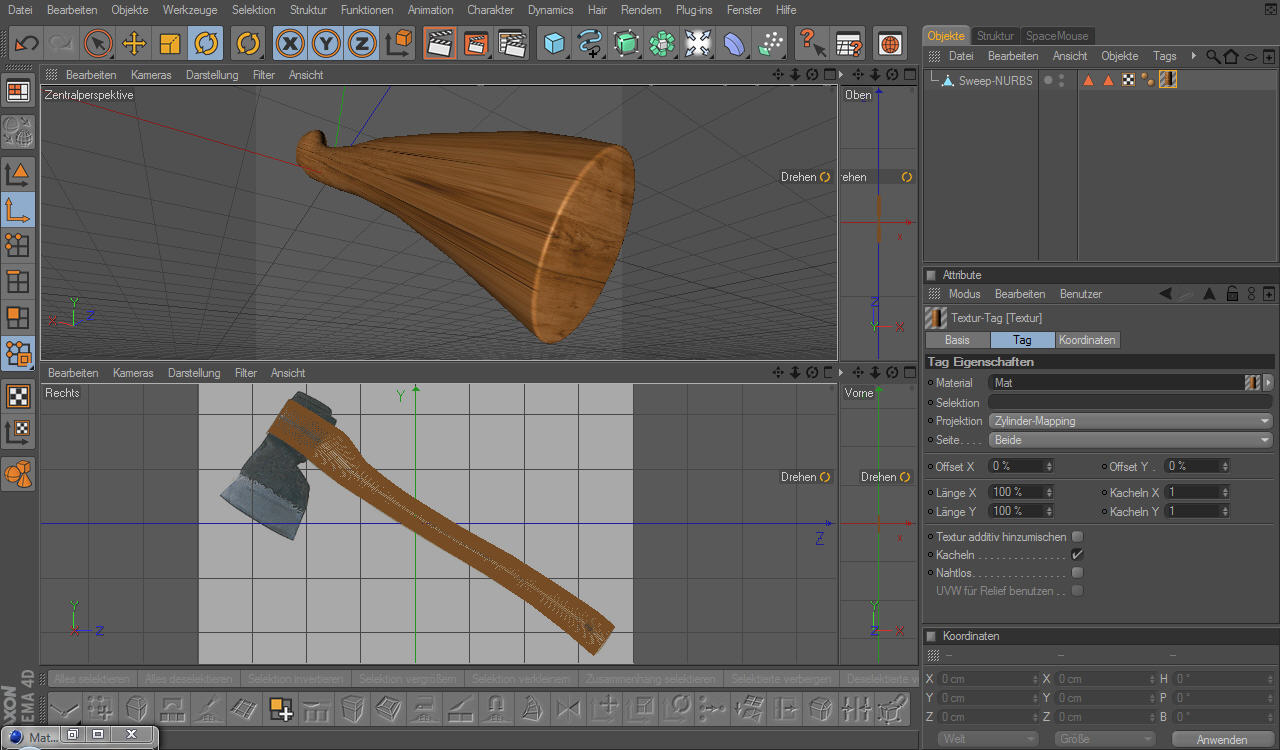 Schau Dir mal an, wie ich die Holzscheite für die Remise gemacht habe, das ist ein gutes Beispiel für Spline Modeling.