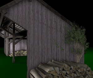 Desweiteren muß ich noch Objekte für das Innere und das Drumherum bauen, damit es nicht so leer wirkt; auf der Liste stehen auf jeden Fall ein Hackklotz mit eienem Beil, eine Heugabel, eine Schaufel, eine Schubkarre und .....mal sehen, wie es dann ausschaut.