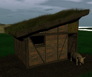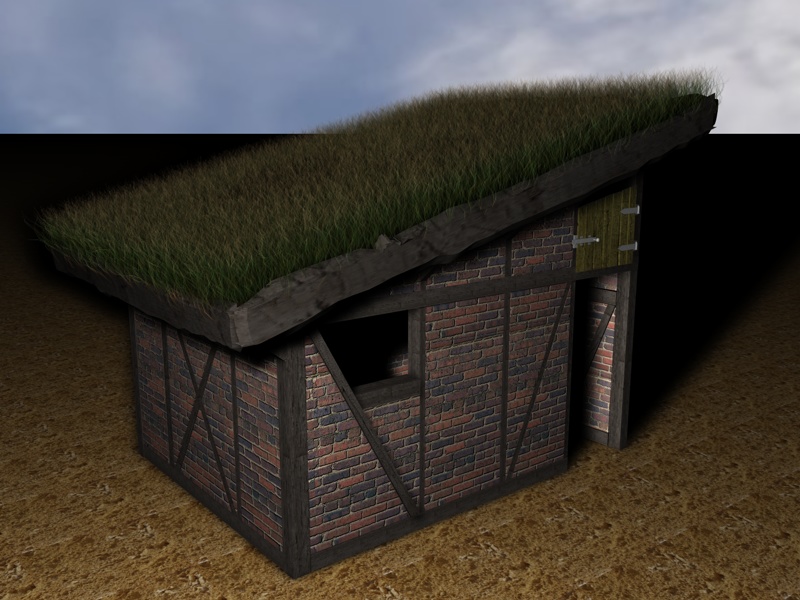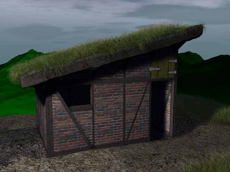 Das Foto vom Ziegenstall gefiel mir so gut, dass ich beschlossen habe, ihn zu bauen. Ausserdem eine gute Gelegenheit, einmal das Worn Edges Plugin auszuprobieren.