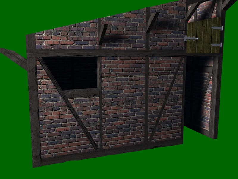 Dach mit Seitenverkleidung und Boden für das Gras. Jetzt fehlt nur noch die kleine Tür zum Heuboden, dann kann der Feinschliff an den Texturen beginnen.....
