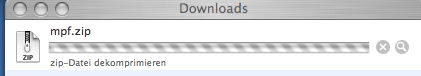 zip-Datie dekomprimieren bleibt der Download stehen. Man sieht nur im