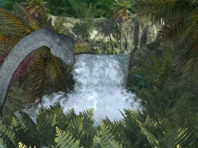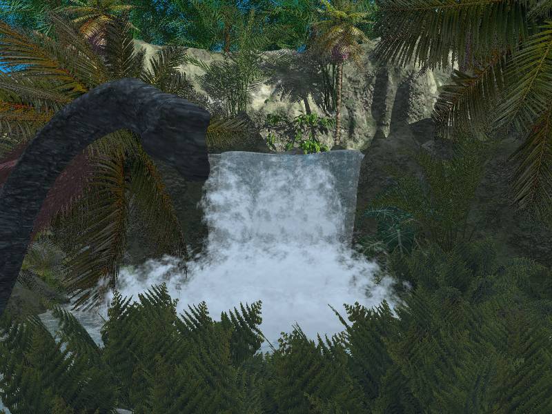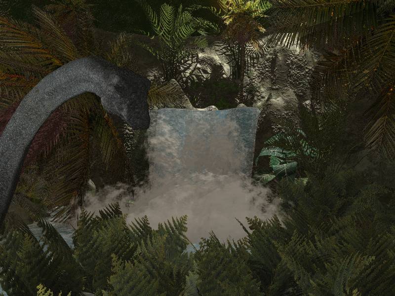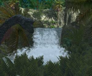 Einen Wasserfall hab ich jetzt so in etwa hingekriegt. Bin jetzt aber unzufrieden mit der Vegetation. Soll ja ein Wasserfall im Dschungel sein.