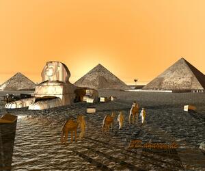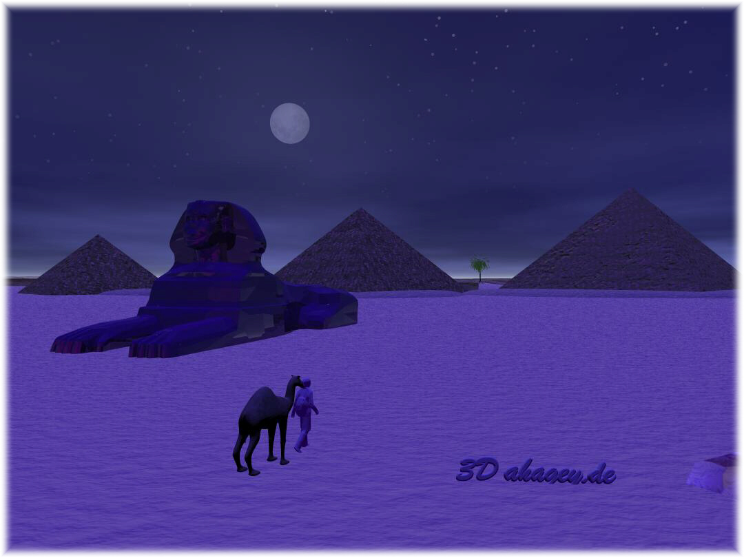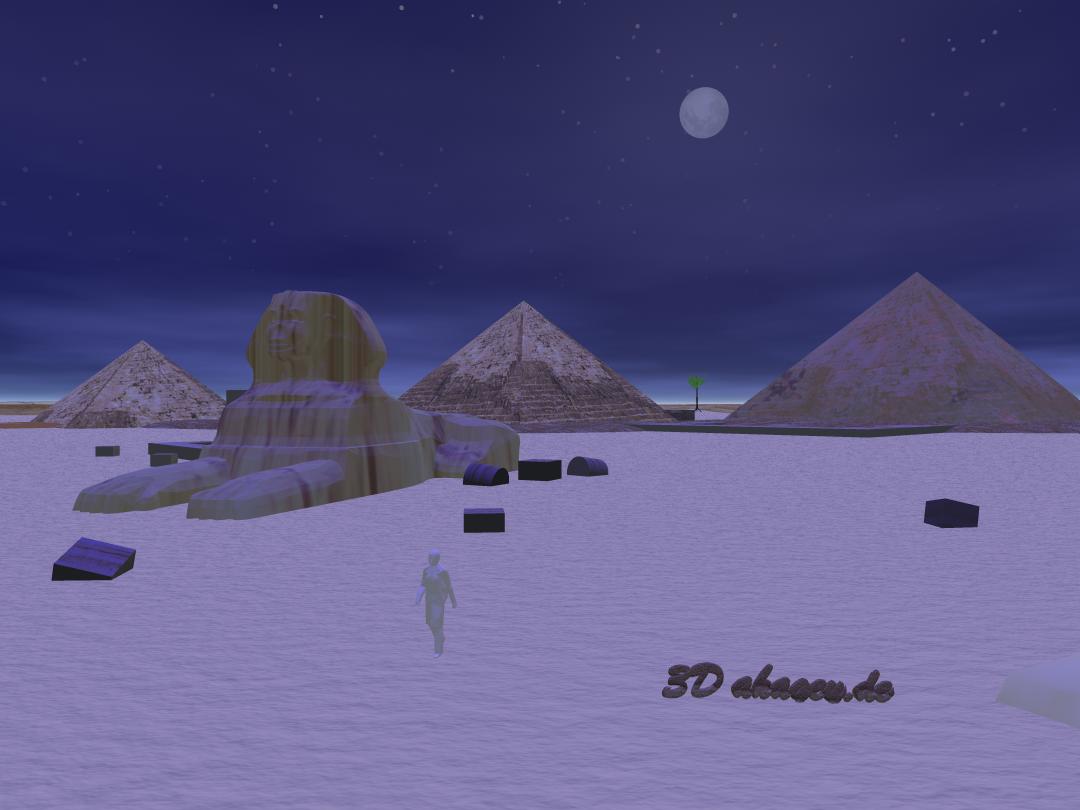 Die Texturen der Pyramiden sind glaub ich noch ziemlich groß skaliert. Da würde ich nochz ein wenig rumtesten. Auch die Sphinx im ersten Bild könnte eine mehr 'sandsteinmäßige' Textur vertragen.