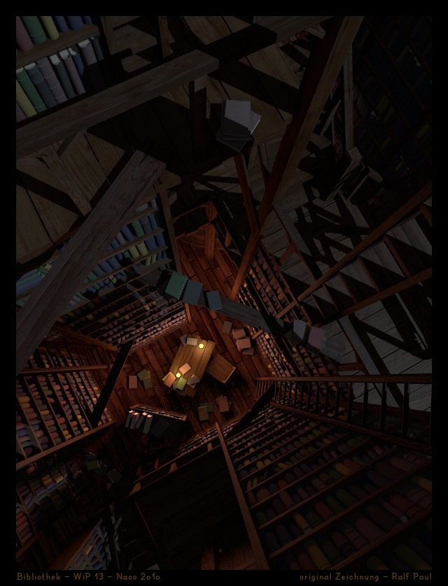 WiP 13: diesmal Bücher, Textur, Bücher, Licht und ein paar Bücher